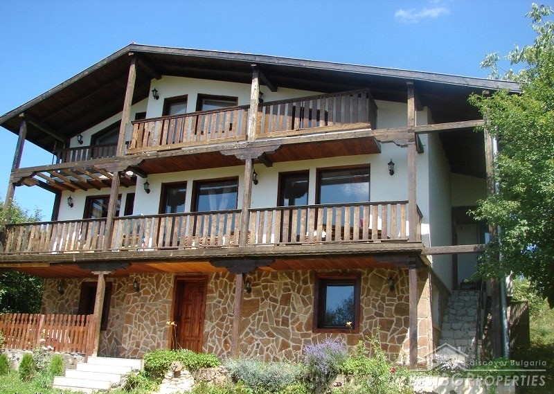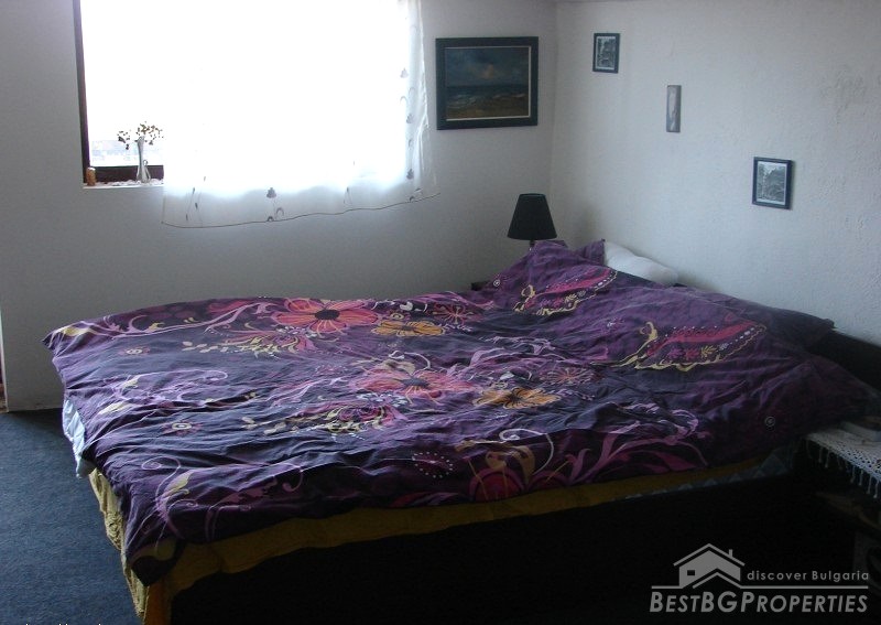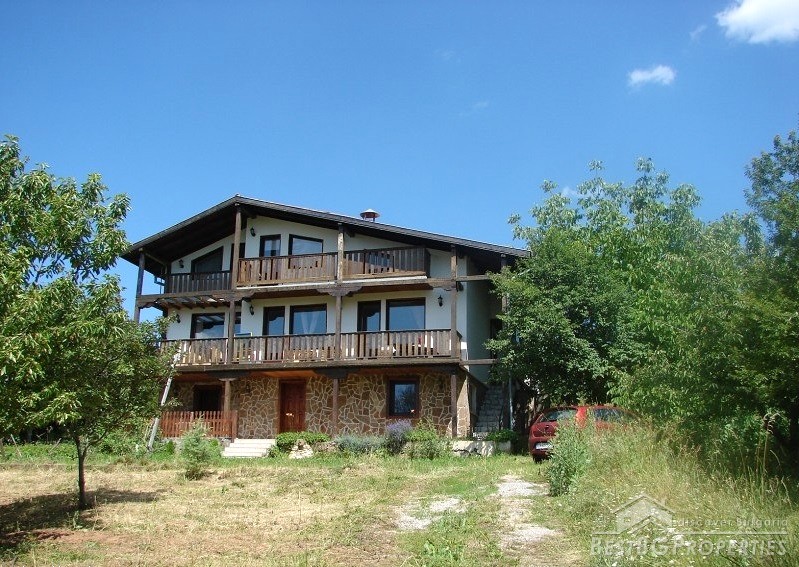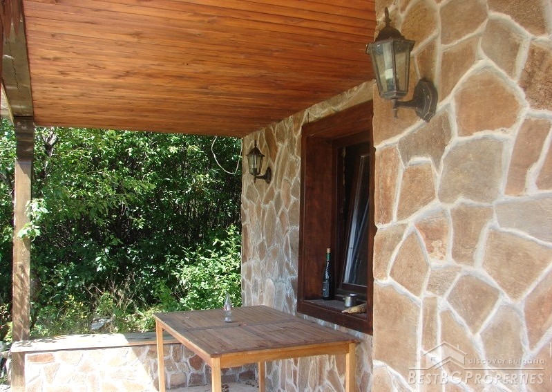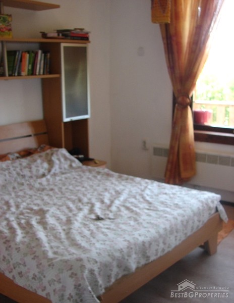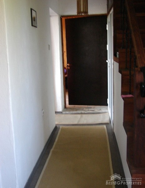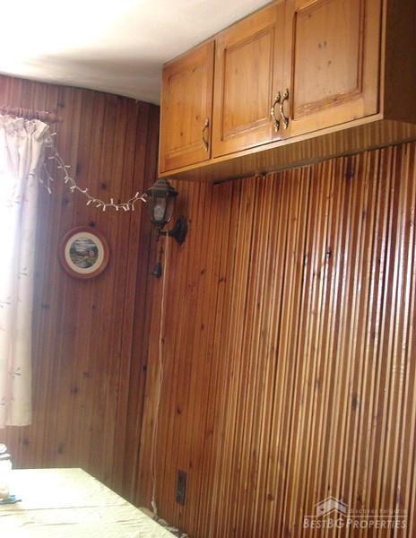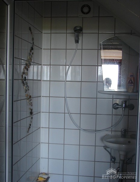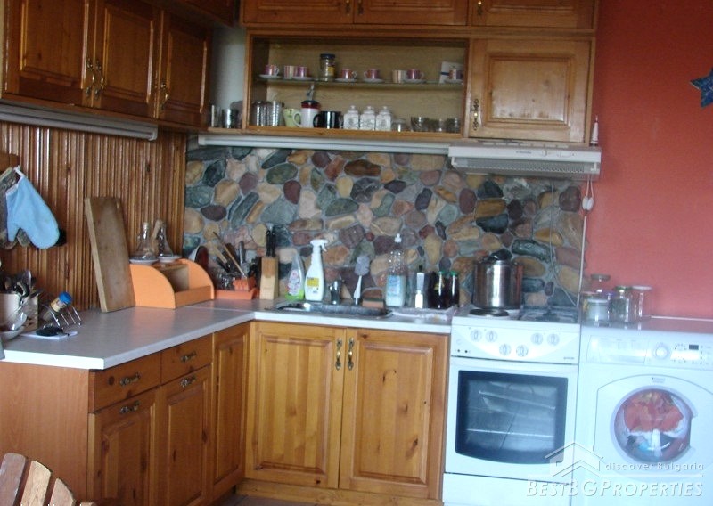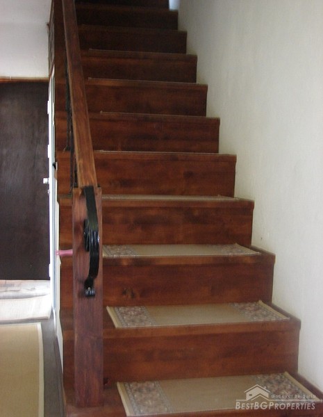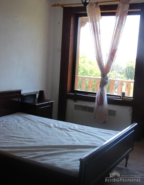 The house has 200 square meters of built area on 3 floors. First floor consists of 2 bedrooms, basement, toilet and a bathroom. The floorings are finished with granite and marble. The second floor consists of a kitchen, 2 bedrooms and a bathroom. Floorings include terracotta in the kitchen, granite in the hallway and carpet in bedrooms. Second floor has 2 bedrooms with carpet floors. There is also a ceiling and three balconies, finished with granite. The house has a water pressure system, boiler, heated with solid fuel and convectors. It is suitable for whole year around living. There is security system. The house has new insulation, new window joineries and new roof. It is furnished and is available for sale with furniture for additional cost. There is a septic tank. The garden is 680 square meters, landscaped. There are many fruit trees - cherries, apples, sour cherries, plums, pears, quince, walnut, and hazelnut.