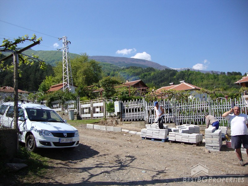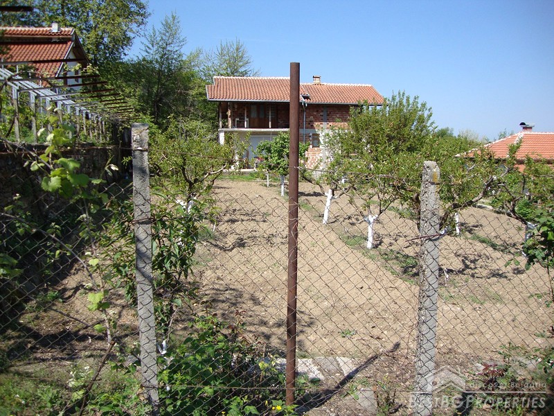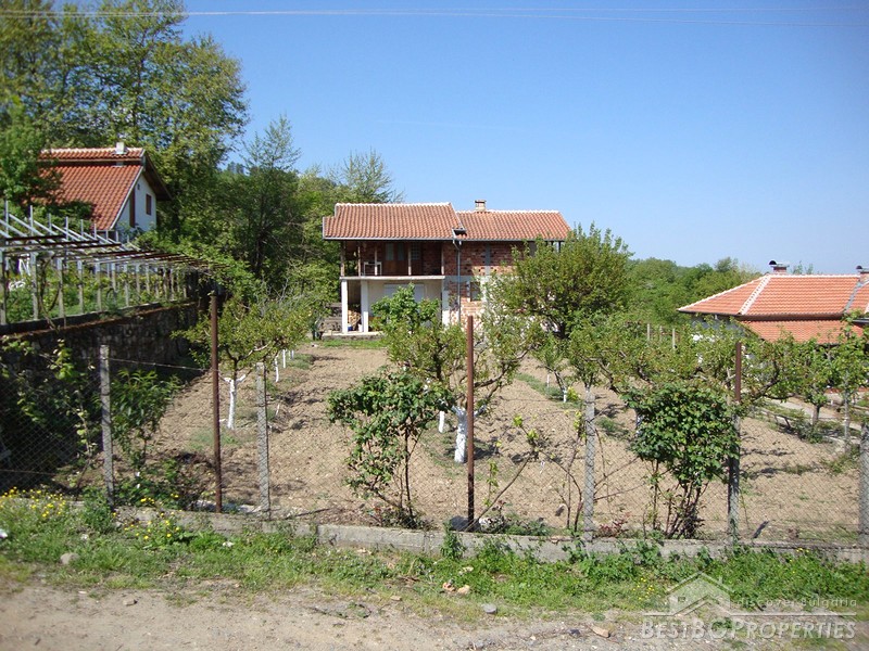 The house which is for sale is newly built. It is made out of brick and concrete. The roof is wooden covered with red tiles, and the window joineries are also wooden. The house is very spacious, suitable for whole year around living. The property is in perfect condition. The first floor is fully furnished. Behind the house passes a small stream and the owner made a decorative waterfall in the yard. The yard its self is very large. It is 1200 sq m in size. It is beautifully arranged with many fruit trees, veggies and other greenery. The whole property is surrounded by a wire fence. The access is by a tarmac road.