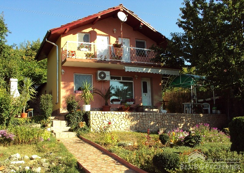 The house is renovated and in perfect condition. It comprises with all amenities for permanent living but in the same time has a status of a vacation villa. The building is solid, two storey, brick construction. It has total living area of 90 sq m. The distribution is as follows: on the first floor there is a living room, kitchen, bedroom and a bathroom. The second floor two bedrooms.