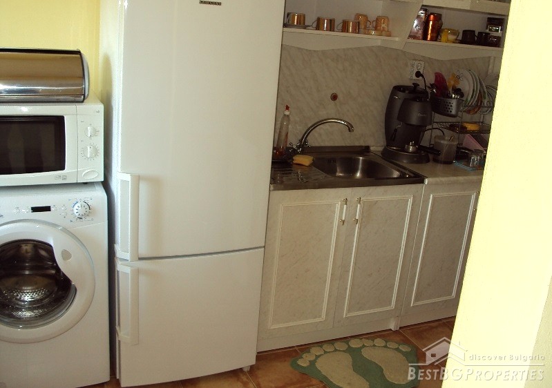The price includes turnkey finishing, full furniture and electrical appliances. All rooms have modern equipment. The floors are tiles and laminate. The heating is via a fireplace and air conditioning.