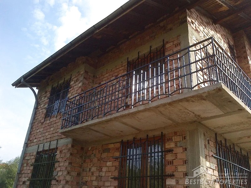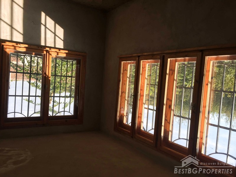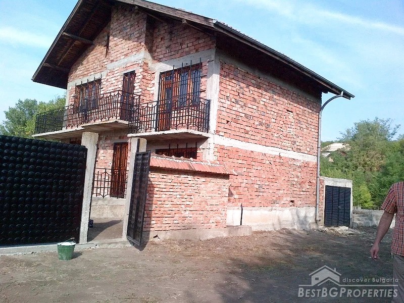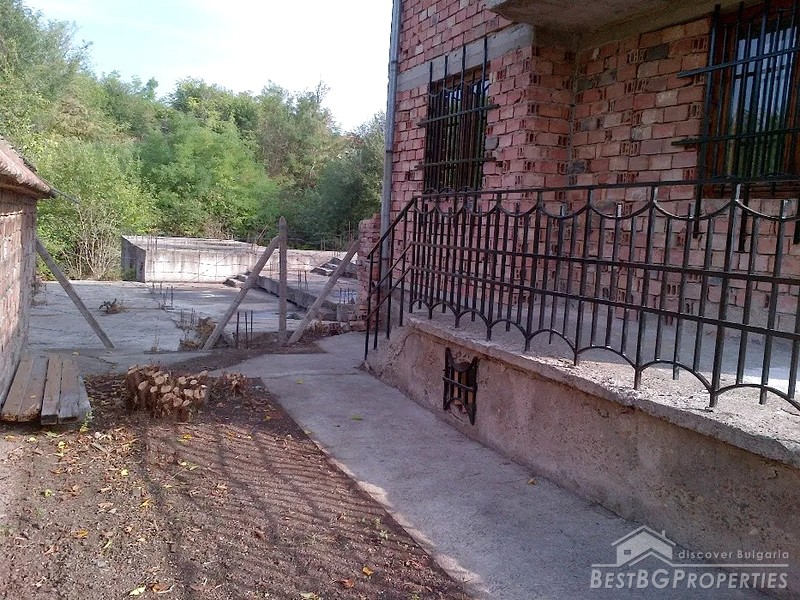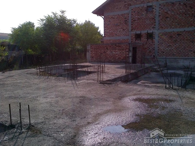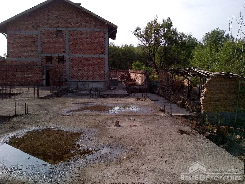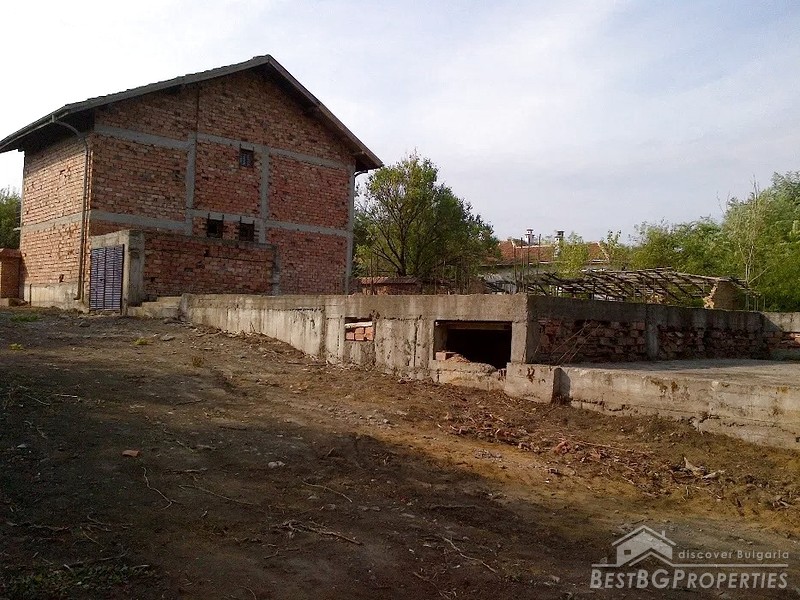 In front of the house there is a fruit garden, a space for a swimming pool, and a garage. Behind the house there is another large incomplete building - roughly 300 sq m, on one floor, suitable for a business development.