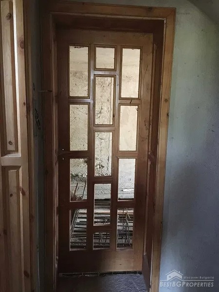 Electricity and water are supplied. Inside the house needs plastering and finishing. Natural wood window joineries were installed. The doors are also made of natural wood. There is sewerage.