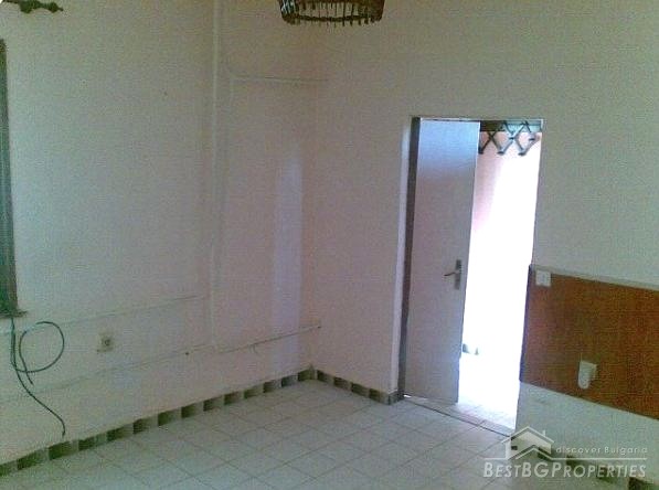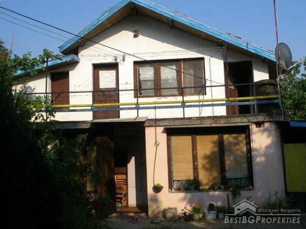 The house is located in the center of the village, near the town hall and the bus stop. It has total living area of 65 sq m and is built on a plot of land with size 530 sq m. On the first floor there is a living room with kitchenette, bathroom and WC, service premise, small and large corridors. On the second floor there is a bedroom and two closets. There is a garage - 17.5 sq m.