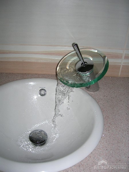 The house consists of a kitchen, living room, kid's room, bedroom, and a hallway. The bathroom and toilet are together. It is equipped with bath tub, hanging toilet Geberit and designer sink. The hallway, bathroom and kitchen are tiled. Other rooms have laminate floorings. The wallpapers in each room are Raufazer that can be painted according to your taste and preferences. In the living room and bedroom one of the walls is lined with decorative stone. The living room has large French windows leading on to the terrace.