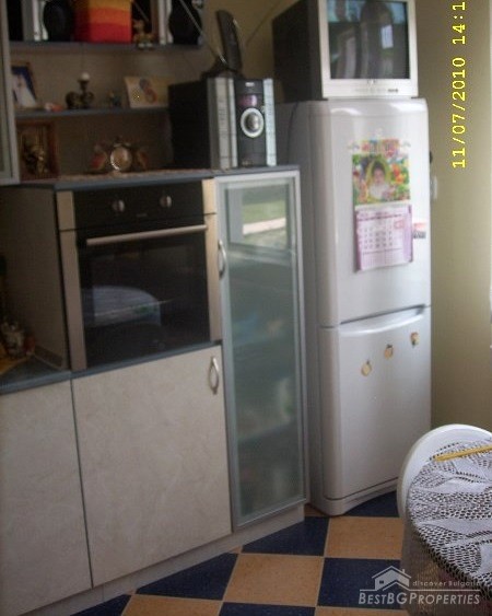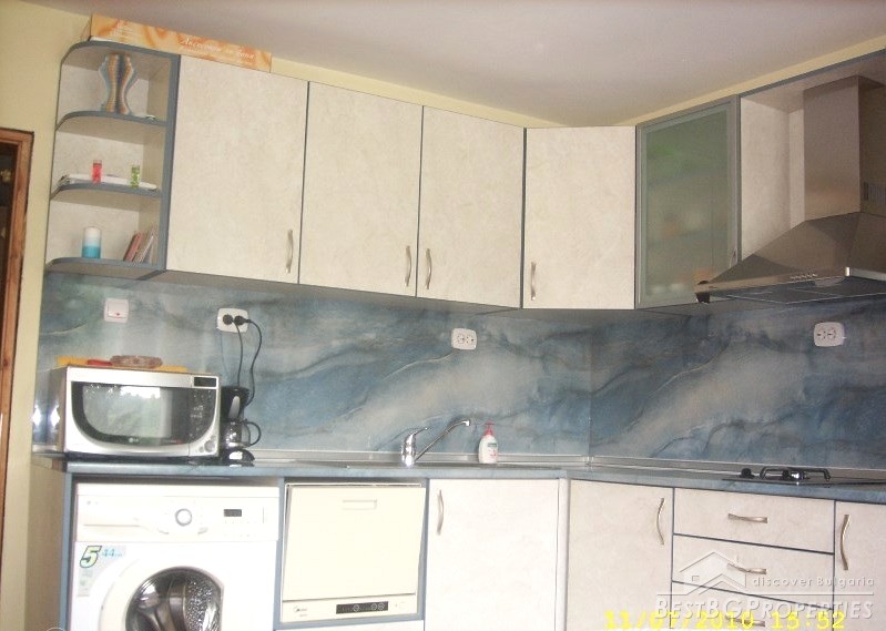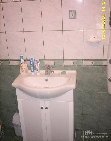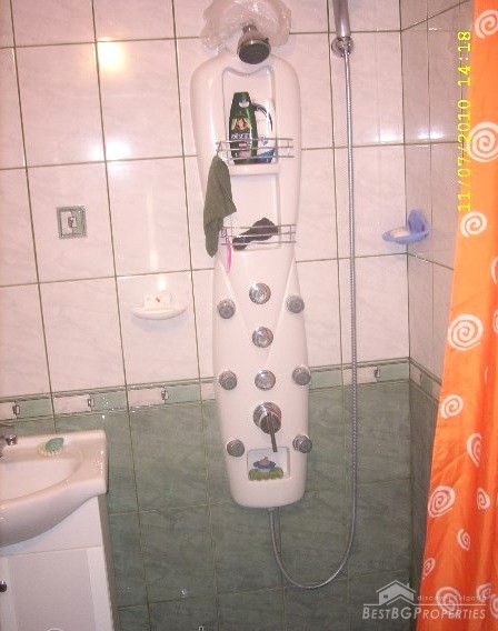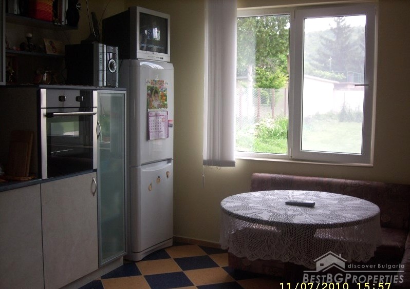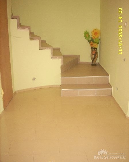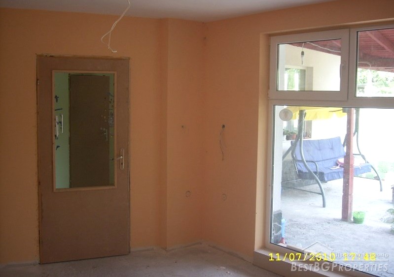 The house is newly built, plastered and insulated. It has all communications, and there is water, electricity and sewer. The kitchen is fully equipped and has cupboards, terracotta floors. The bathroom and WC are also equipped. The bedroom is on the second floor – furnished. The living room is not furnished, but painted and with suspended ceiling. There is also a closet.