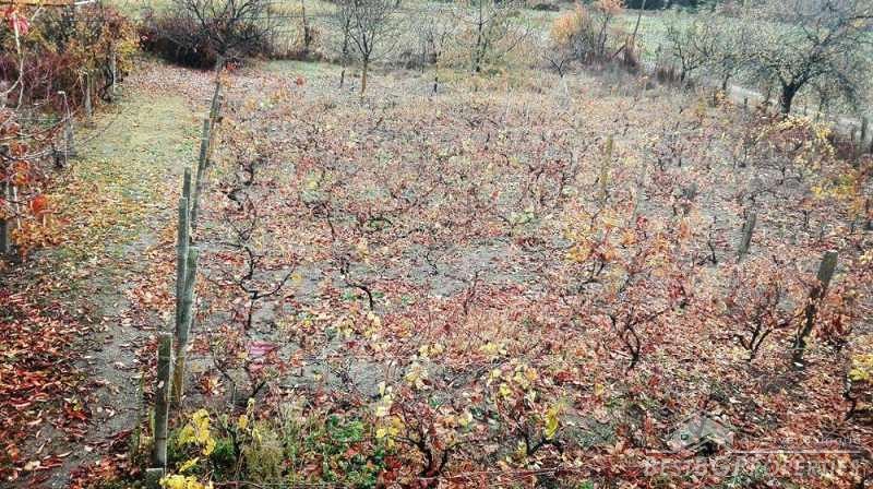 In the yard there is an additional building, currently used as a workshop. The garden includes a variety of vineyards and an orchard.