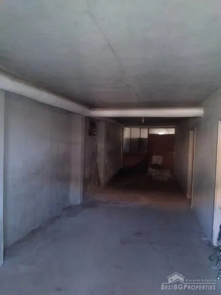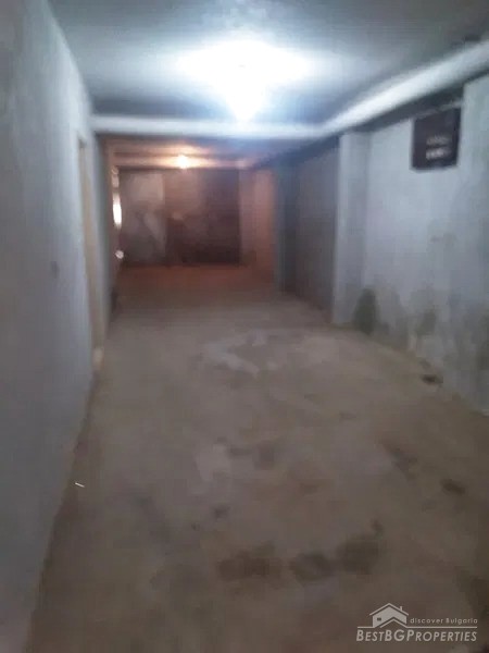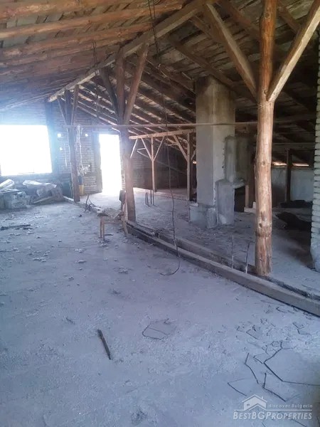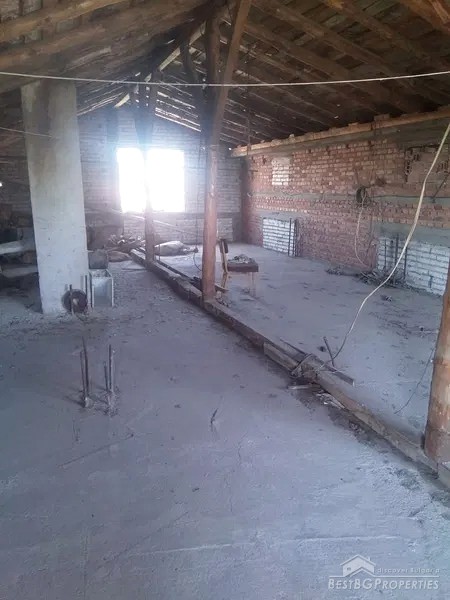 The house has three floors. The ground floor consists of a garage for three cars, a boiler room, a storage room of about 30 sq m and a tavern. On the first floor there is an entrance hall, a living room, dining room and kitchen, two bedrooms, hallway and bathroom. The second floor is not finished.
