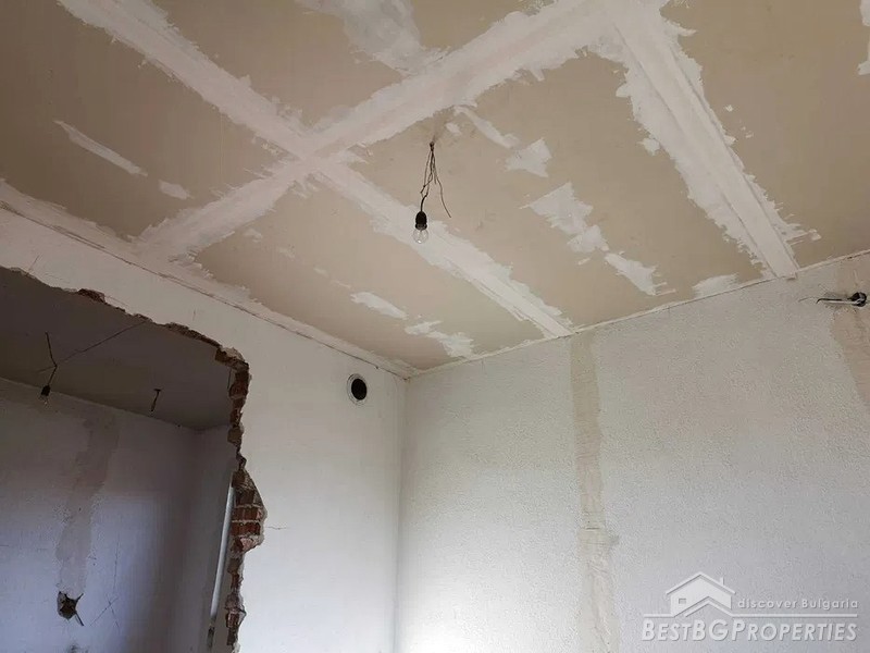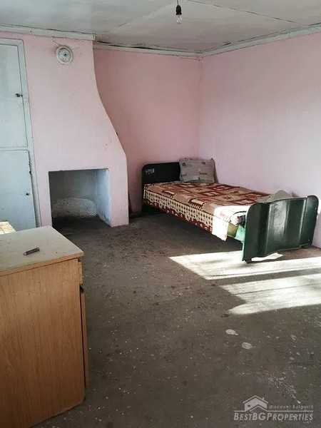 The house is on one floor. Adjacent to it there is a summer kitchen with built-in fireplace. The house consists of a large corridor that is suitable for making a bathroom with toilet and two rooms – one is planned for a living room and the other room is a spacious bedroom.
