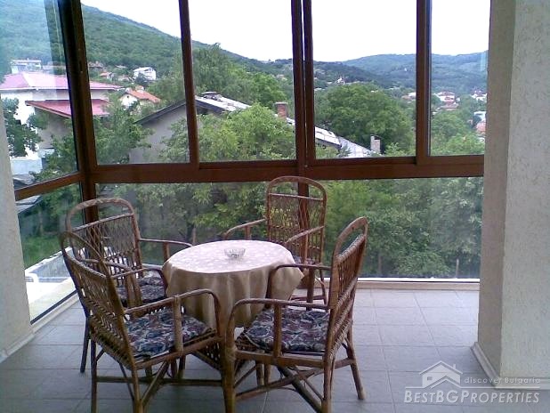 The house is newly built and comprises outstanding view towards the city and the mountain. It is located near the forest, thus the air is always fresh. The area is ecologically clean. The house itself is two stories and each story is divided on two levels. The first floor consists of a WC, lounge, large bedroom, kitchen and guest room on the first level, and spacious living room on the second level. The second floor consists of one bedroom, children's room, large winter garden with amazing view, and a spacious bathroom with WC - on the first level. The second level of the second floor comprises large bedroom and a closet. The house is fully furnished and is for sale with all kinds of electrical appliances. There is also water and electricity provided, telephone, satellite TV, and high speed internet. The house is built on a plot of land 740 sq m large. It is nicely arranged with lots of greenery. The access to the property is provided by an asphalted road.