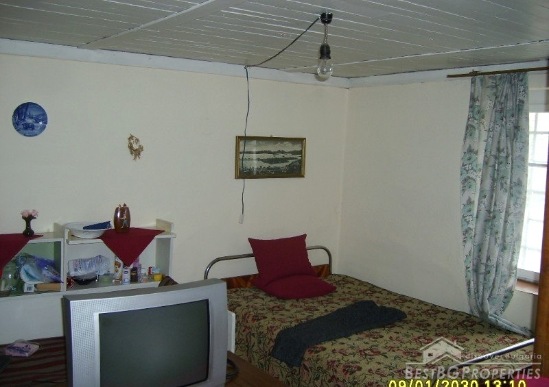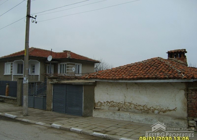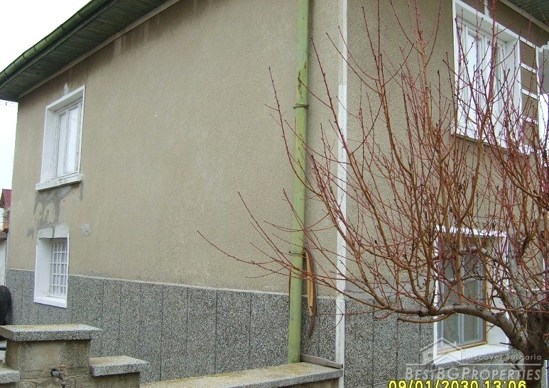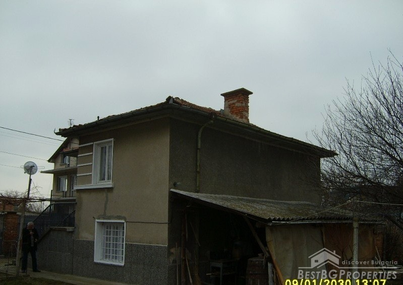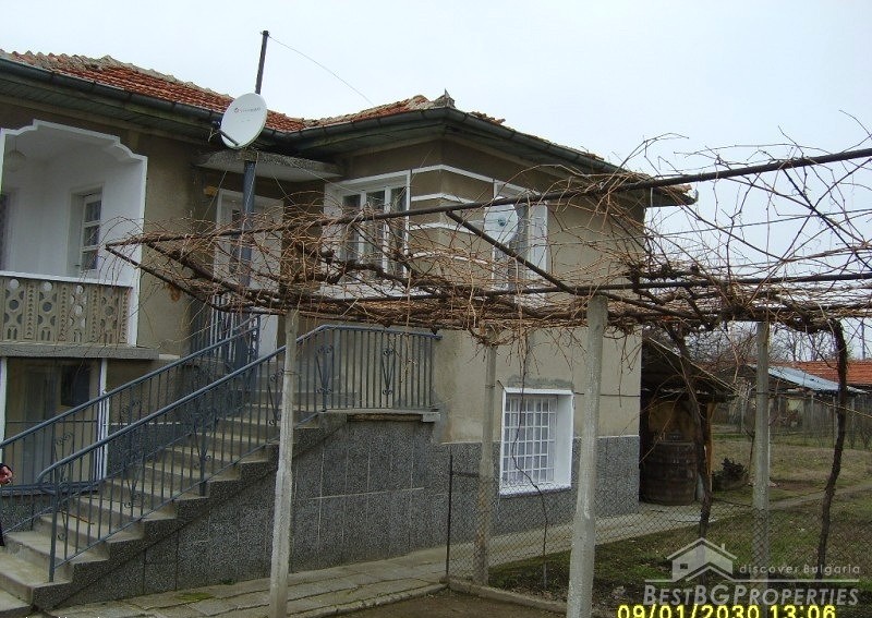 The offered house is in very good condition and is ready to move in. It is two-storied with built area of 65 sq m. It is solid, brick built with concrete foundations. From the inside it has wooden floors and ceilings, plastered walls. The house sits on a spacious plot of land with size 860 sq m. In the yard there is a vineyard, fruit trees and vegetables. There is also a garage and few additional agricultural outbuildings. The lovely view is toward the nearest houses and revealing the typical atmosphere of the village.