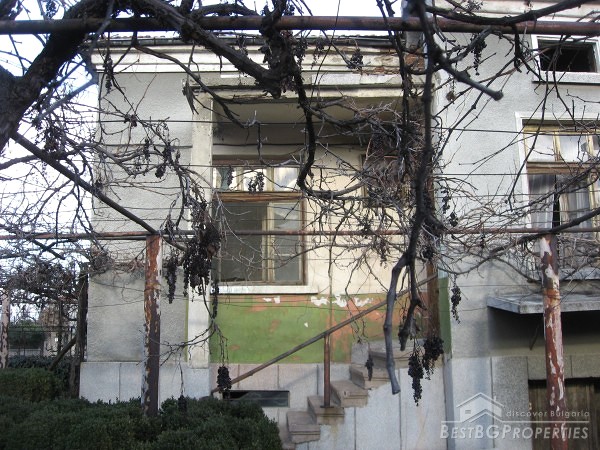 The offered house is detached, single storied with area 60 sq m. It is brick built, plastered, has wooden beams, and consists of three rooms: living room, kitchen, bedroom and a bathroom on the residential floor. There is also an attic room and a basement. The yard is 800 sq m in size. It is cultivated and has lots of vines and fruit trees. It also includes metal greenhouses. The house is connected to all communications - there is three phased electricity, water.