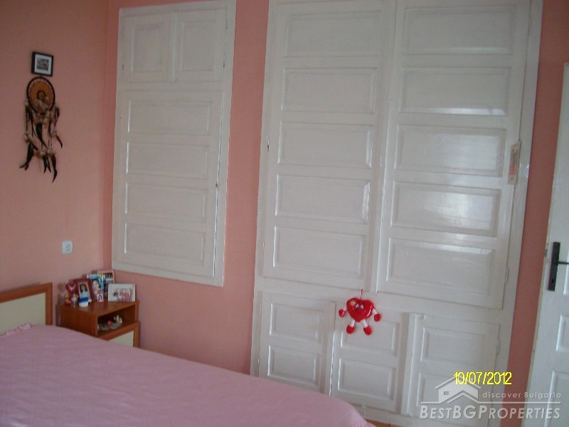 The property is situated just 25 km from the city of Plovdiv and 20 km from the world famous spa resort Hissarya. The house is single storied with total living area of 130 sq m, built on a plot of land with size - 400 sq m. The living area is distributed between three bedrooms, large living room, kitchen, large basement and laundry room. There are inside bathroom and toilet connected to the central sewage. There is entirely replaced PVC windows and doors, interior and exterior shutters. In the yard there is a garage, a well for irrigational needs, few additional outbuildings and a large vine.