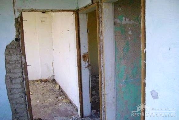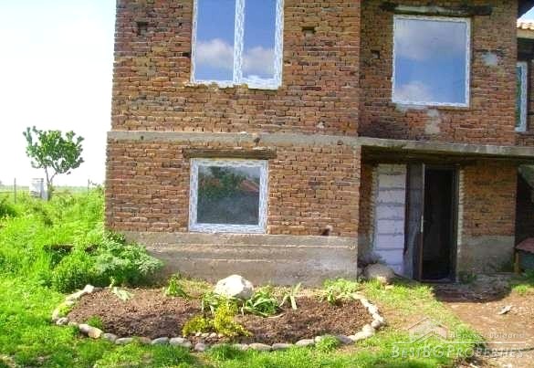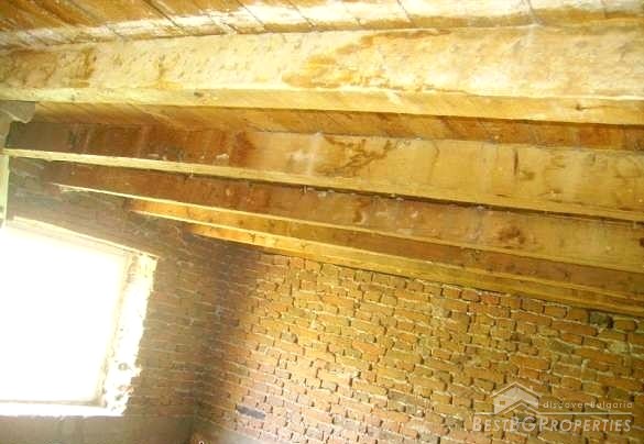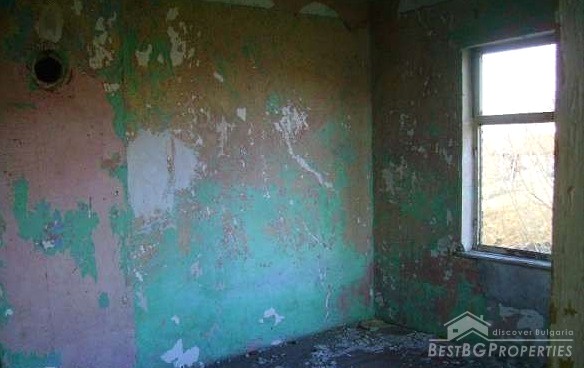 It is a brick house on 2 floors with total living area of 128 sq m. It is built on a plot of land with size 2540 sq m, surrounded by a network. The distribution inside is as follows: first floor consists of an entrance hall, a large room and a kitchen, no flooring. Second floor comprises of an entrance hall and three separate rooms, wooden flooring. Each floor has a separate entrance.