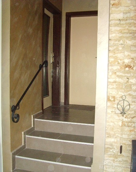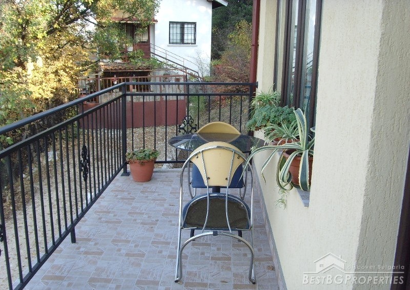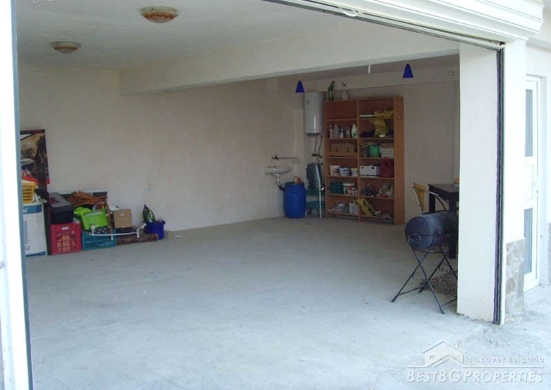 The house is on 2 floors. The upper floor is completely finished and furnished with area 100 sq m. It consists of two bedrooms and a large living room with kitchen, bathroom and a large terrace with panoramic views of Plovdiv. The lower floor can be used for both - living or as winery or also garages. You can see from the pictures the current status of that floor. The ground floor is 50 square meters.