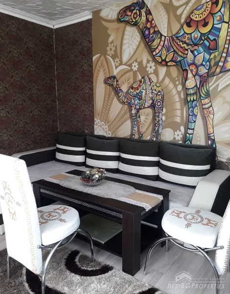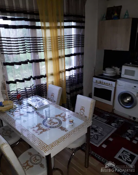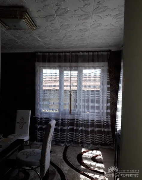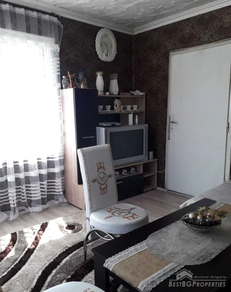 The total living area of the property is 100 sq m. The living space is distributed between a living room, a kitchen, two bedrooms and an internal bathroom. The house also comprises with an annex, which comprises of a separate room (bedroom). The property is for sale furnished.