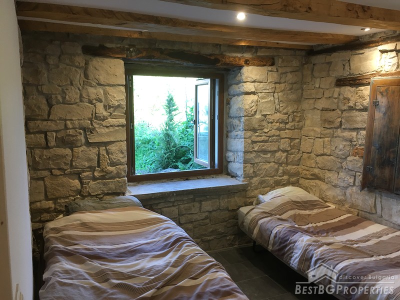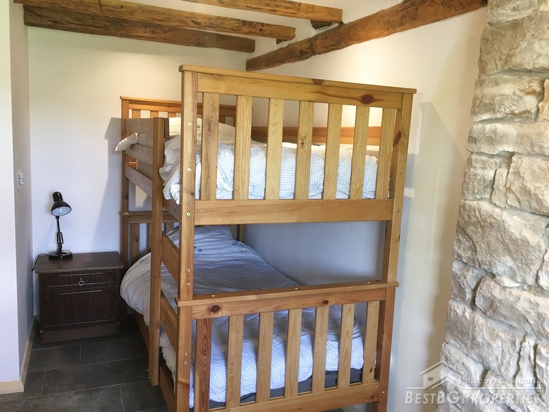 The house is located in the Veilko Turnovo region in the middle of the country in an area which is hilly rather than mountainous. The village itself is 30 km away from Veliko Turnovo, 8 km away from. The village is thriving with 4 grocery shops, an extensively stocked hardware store, a couple of bars, a dentist, post office and working library. There is superfast fiber optic broadband available as well as excellent 4g signal throughout the village and at the house itself.