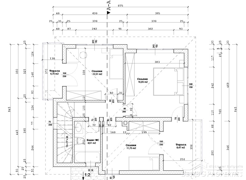 The house sits on a panoramic plot of land with size 500 sq m overlooking the sea. The architect designed a nice veranda on the second floor, from which will open great sea view.