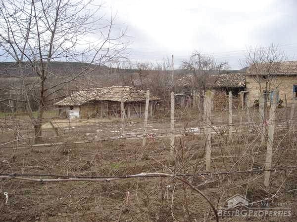 The property consists of two adjacent yards with total area of 1660 sq m. They include few buildings - a two-storey house, a one-storey house, a large additional building which faces the street, and a smaller agricultural building. The property is facing an asphalted street for over 100 m. All buildings are in need for repair.