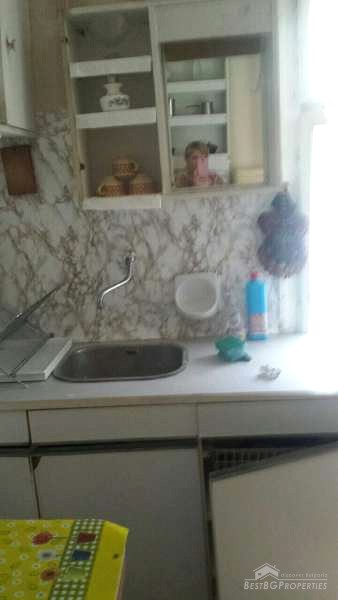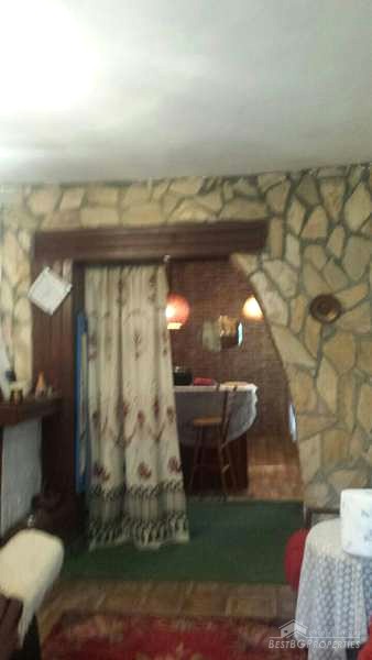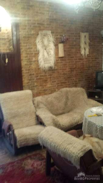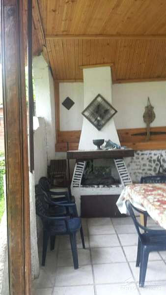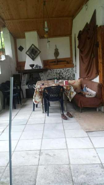 The house is on two floors. The first floor consists of a living room with fireplace, one room with breakfast bar and chairs, kitchen (cabinets, refrigerator, stove, sink and other) and internal bathroom. Outside staircase leads to the second floor which consists of a small terrace, one large room and a smaller room. The house also has a basement. The total living area is 90 sq m.