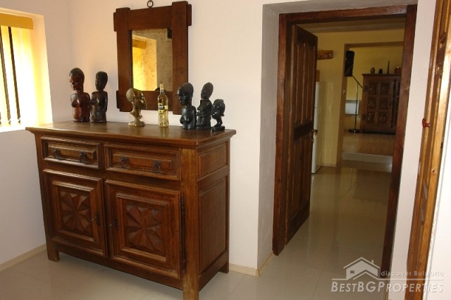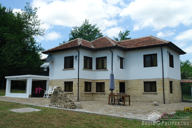 This is a wonderful property for sale fully renovated. It is perfect to be used as your new holiday home because of its location and privacy - 40 km south from the town of Rousse on the edge of a village in immediate vicinity to a pine forest. The house provides 180 sq m of living space spread on two floors. There are two plots of land including in the price, the first is 1420 sq m of garden and 1700 sq m is part of a forest set close to the property. The living space on the ground floor is distributed between living room with kitchen, fire place, shower room and WC, wet room and internal staircase; the first floor comprises 3 bedrooms, corridor and spacious terrace facing the forest and the garden. The property is connected to the water mains, landline and electricity system. All windows are changed with double glazed, the roof is newly repaired, the house is outside insulated, the floors are covered with granite or laminated. The bedroom is fully equipped. The property is ready to move in. The total number of bedrooms is 3. The total living area of the house is 180 sq m. The total size of the plot - 3120 sq m.