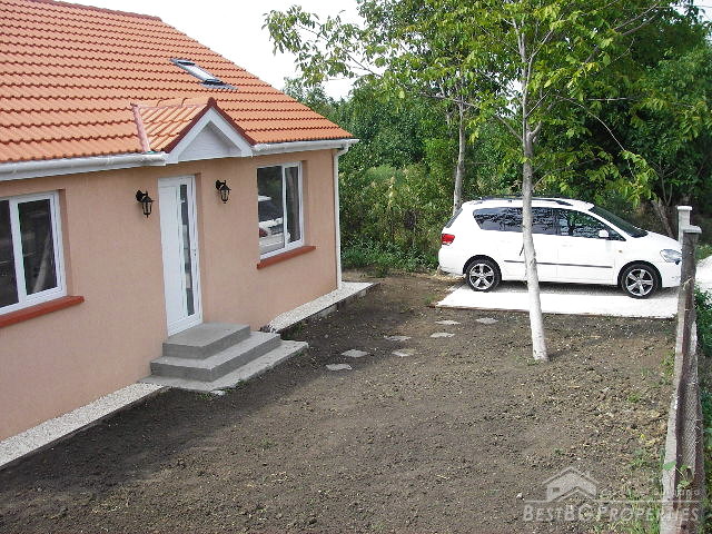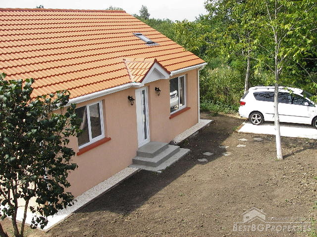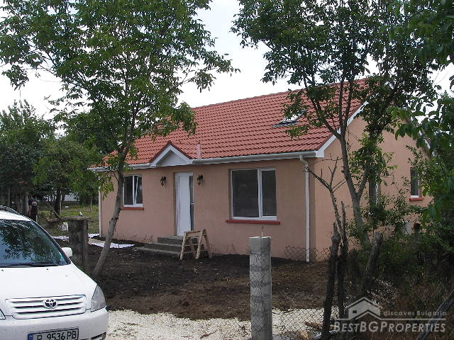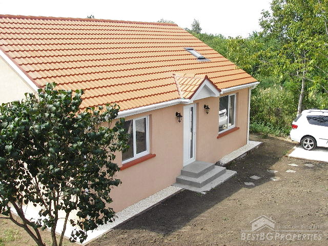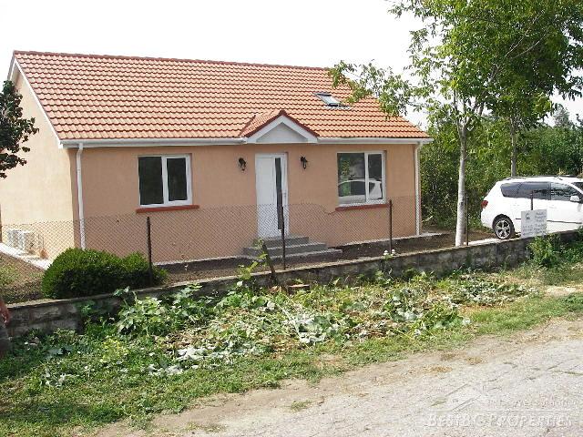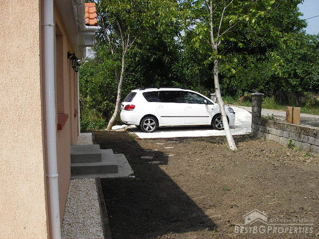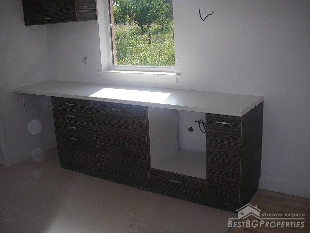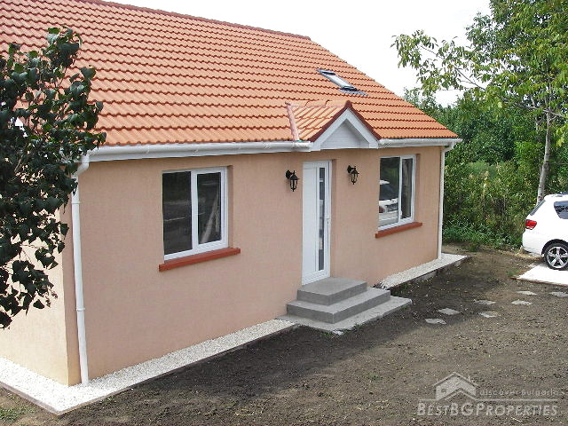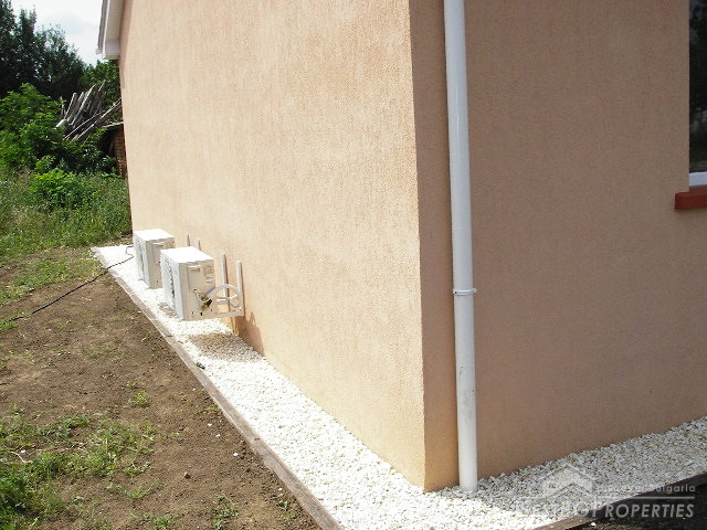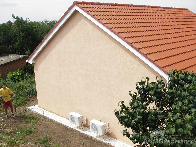 The house is one storey and has total living area of 80 sq m. The house comprises 2 bedrooms, living room with kitchen box and a bathroom with WC. It is new kind of construction, made entirely of brick. It is fully finished with high quality materials according to the highest requirements of construction. The window joinery is PVC, the floorings in the kitchen area and the bathroom and WC are finished with terracotta and faience. The floorings in the living area and the bedrooms are with laminate. The walls and ceilings are painted with high quality white latex paint. There is inner isolation. Each room is fully air-conditioned. The house is easy to heat in the winter because of the insulation and also it will be cool during the summer. The kitchen is equipped with kitchen furniture. The bathroom and WC are also fully equipped with a new shower cabin, sanitary equipment and sink. Water and electricity is provided in the property.