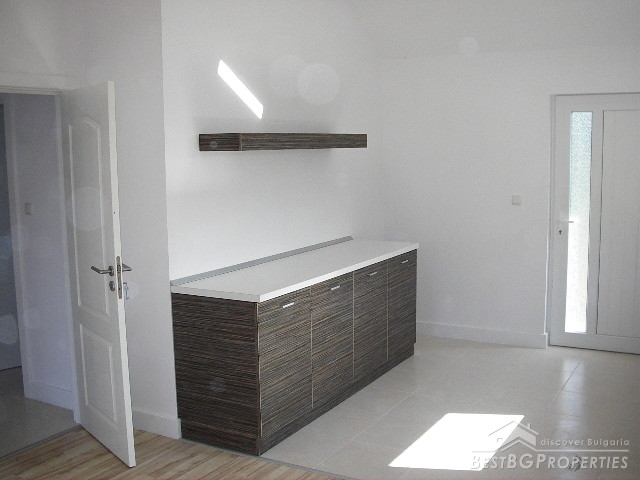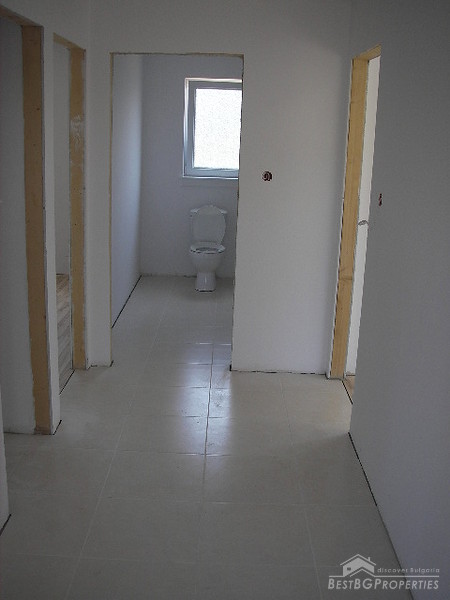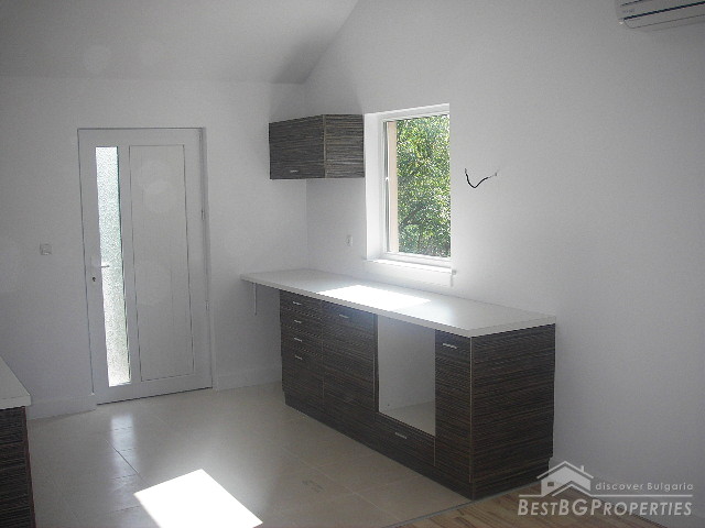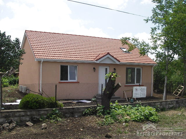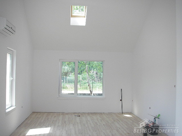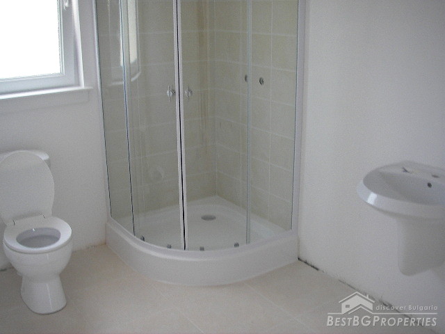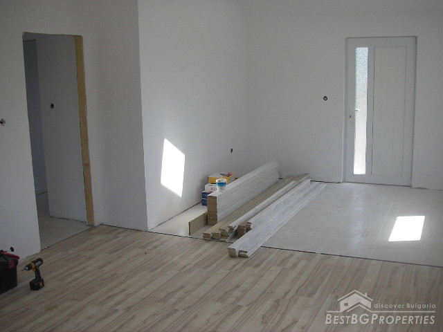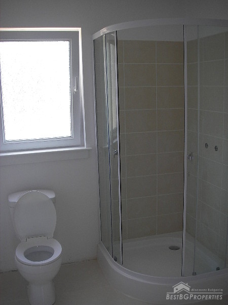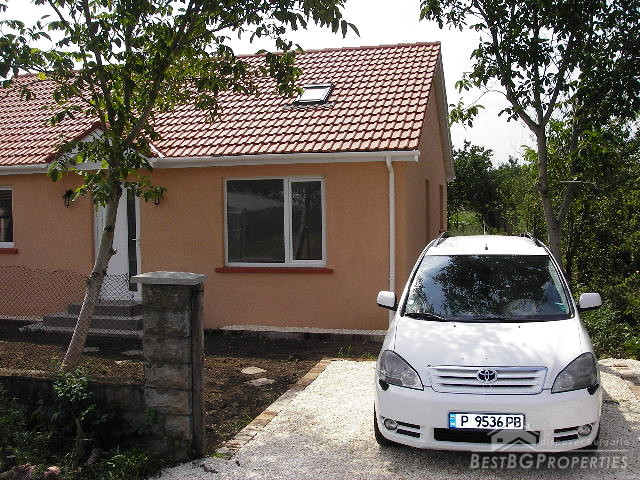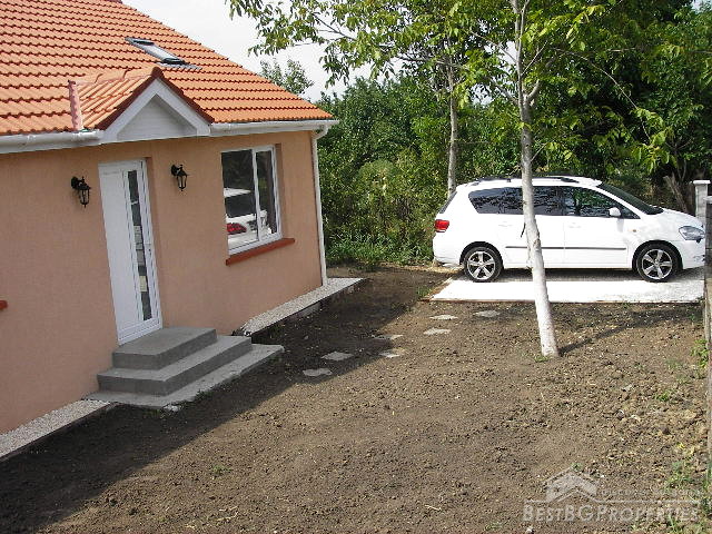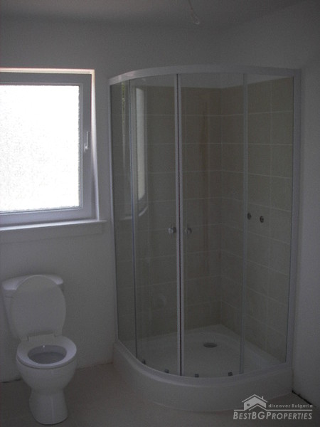 The house is one storey and has total living area of 80 sq m. The house comprises 2 bedrooms, living room with kitchen box and a bathroom with WC. It is new kind of construction, made entirely of brick. It is fully finished with high quality materials according to the highest requirements of construction. The window joinery is PVC, the floorings in the kitchen area and the bathroom and WC are finished with terracotta and faience. The floorings in the living area and the bedrooms are with laminate. The walls and ceilings are painted with high quality white latex paint. There is inner isolation. Each room is fully air-conditioned. The house is easy to heat in the winter because of the insulation and also it will be cool during the summer. The kitchen is equipped with kitchen furniture. The bathroom and WC are also fully equipped with a new shower cabin, sanitary equipment and sink. Water and electricity is provided in the property.