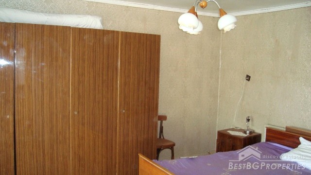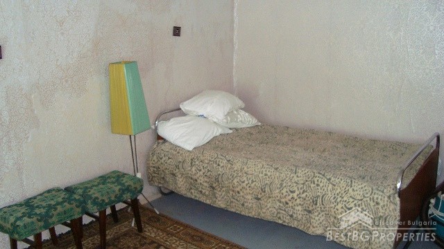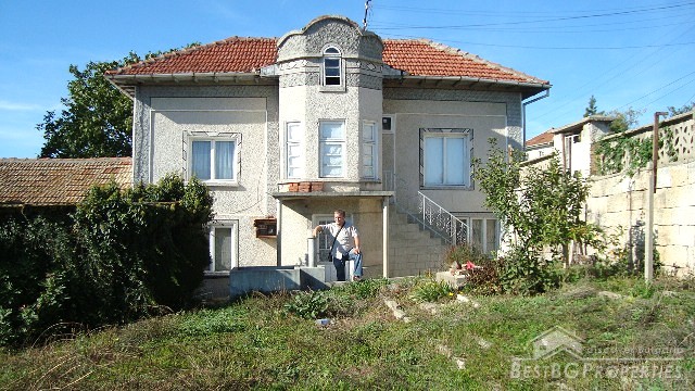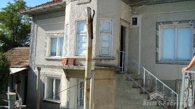 The property consists of a house and a very spacious yard. The house is two stories and comprises total living area of 170 sq m. It is built on a plot of land with area of 1300 sq m. The living area is distributed between two residential floors. The first floor consists of two rooms, corridor, internal bathroom and a toilet. The second floor comprises two rooms, corridor, and a storage premise. The yard includes also a separate building with living room and dining room - 30 sq m large, and as well a garage and another additional outbuilding - 50 sq m. There is water mains and electricity provided in the property. The property faces and asphalted road which guarantees easy access through out the whole year.