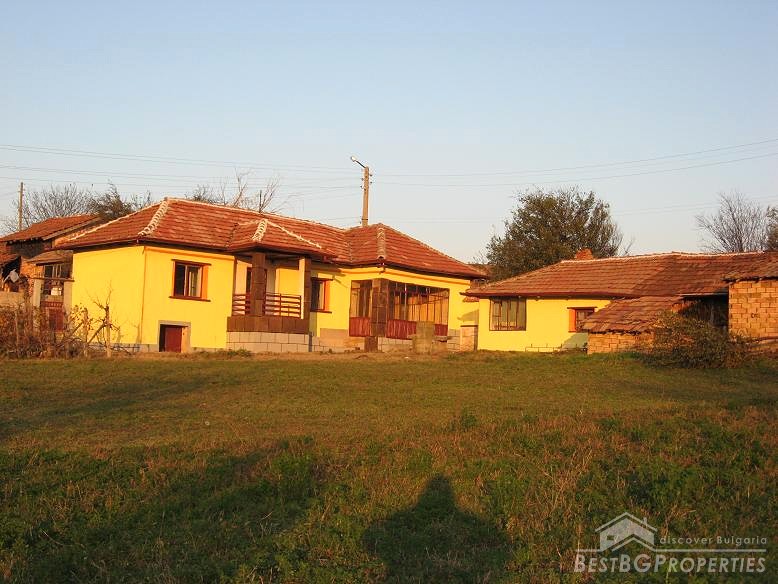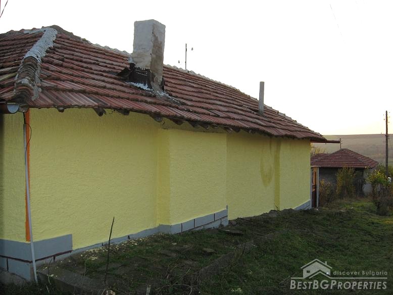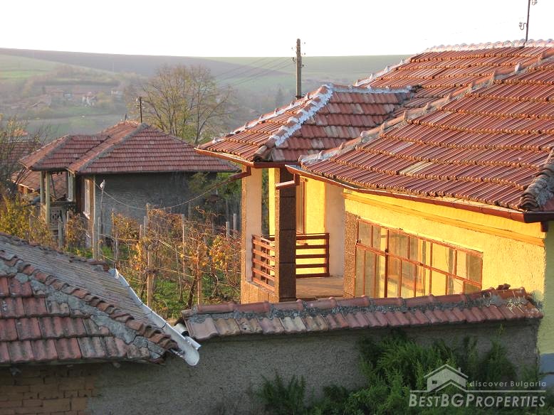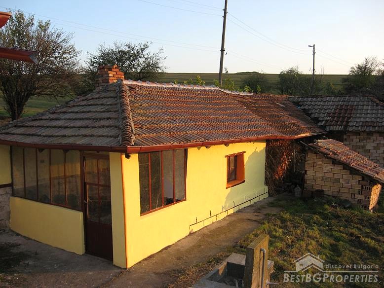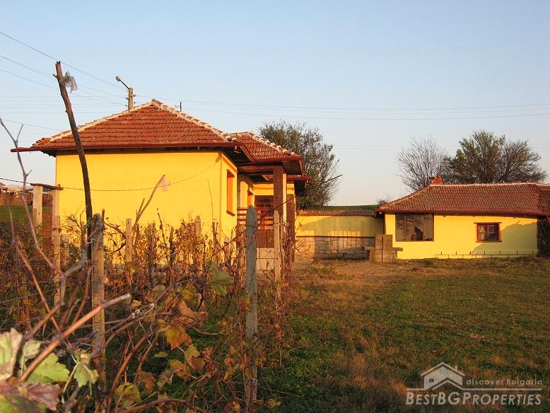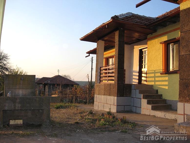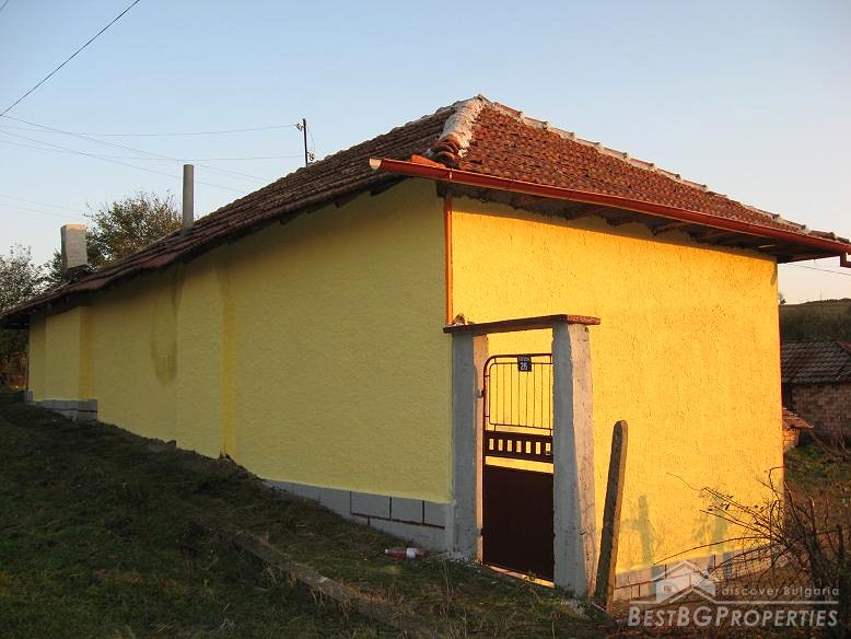 The house is located at the end of the village. It has total living area of 110 m2, built on 2 floors. On the ground floor there is living room with kitchen. On the second floor there are 2 bedrooms with corridor and a cellar. Next to the house there is summer kitchen and shower room. Next to it there is a farm building. The yard is on a corner and has face on 2 streets. The property is in very good condition. The land which goes with the property is 1500 m2.