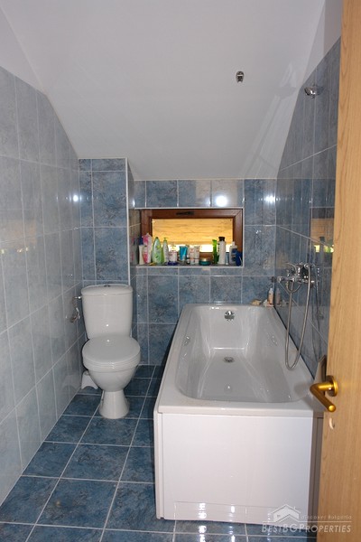 The house is built in 2008 year and is for sale fully finished "on key" stage with equipped bathrooms and WCs. It has laminated and terracotta floorings, the bathrooms are finished with faience and terracotta, the window joineries are PVC, the walls are with isolation and plastering. The front door is armored and there are all communications - water and electricity installations.