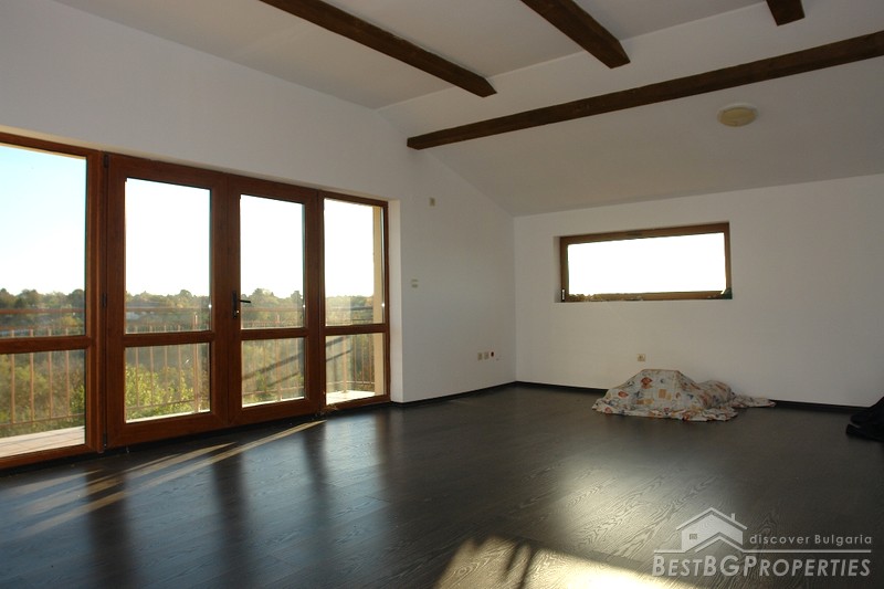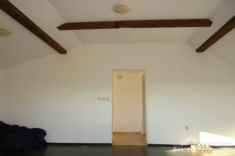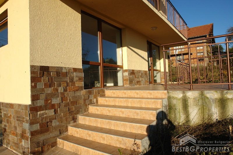 The house comprises three residential floors and total living area of 180 sq m. The first floor consists of a basement, closet, corridor, lounge, living room, kitchen and a sanitary premise. The second floor comprises two bedrooms with balconies, bathroom with WC and a corridor. The last, third floor has large bedroom with balcony and a bathroom with WC and bath tub. The house is built on a spacious plot of land with total size of 1550 sq m. The property is situated 23 km away from Rousse and the Romanian Border. It comprises amazing views towards the countryside.