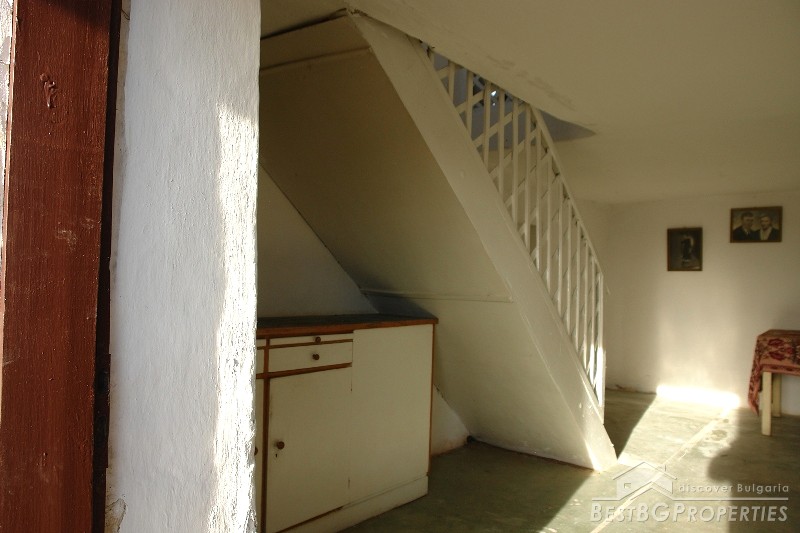 The house is two-story. On the ground floor there is the kitchen area, old bathroom with log burning boiler, corridor and a double room. Trough internal stairs you will reach the top floor where you will find 3 nice sized bedrooms, corridor and a big balcony overlooking the beautiful garden and the amazing Stara Planina Mountain.