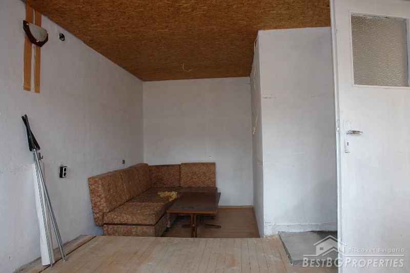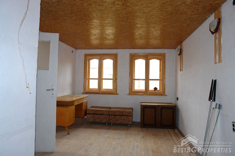 The house is brick built with concrete plates. It is three storied and is built on a plot of land with size 605 sq m. The distribution of the premises is as fallows: first floor - corridor, kitchen, closet, living room, and a bathroom with WC. Second floor - corridor, three rooms and a shared balcony for all the three rooms. The third floor comprises a large room with a balcony around 50 sq m. The house has aluminum window joineries. The property is situated close to the center of the village.