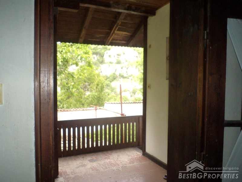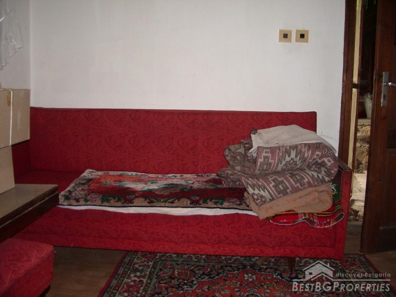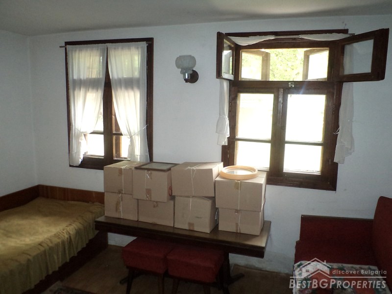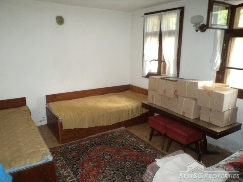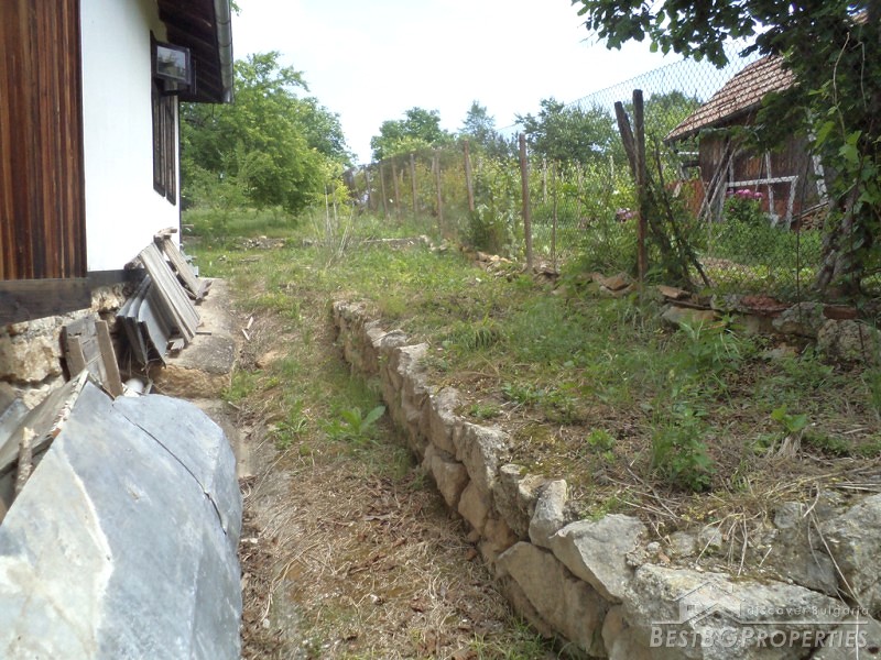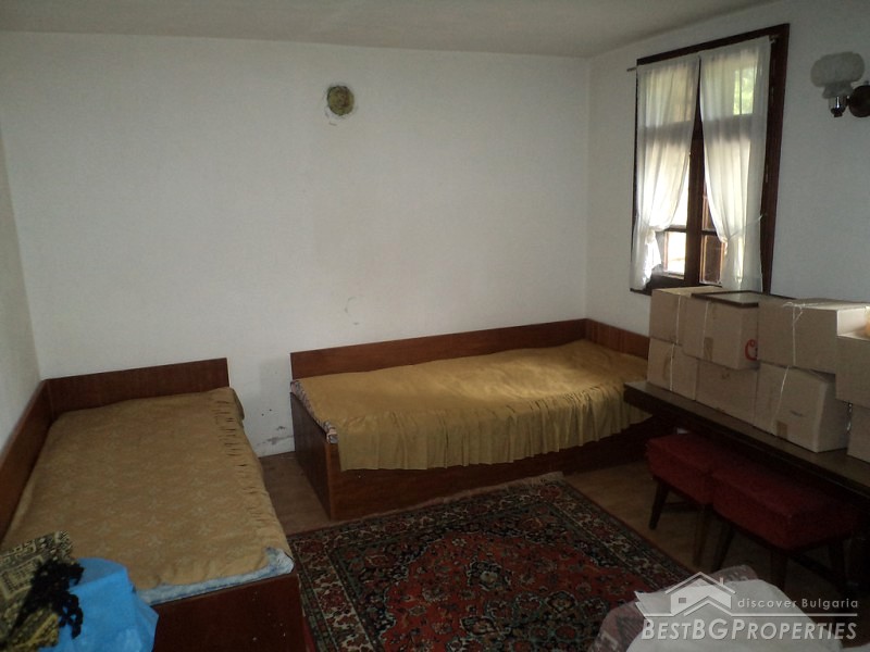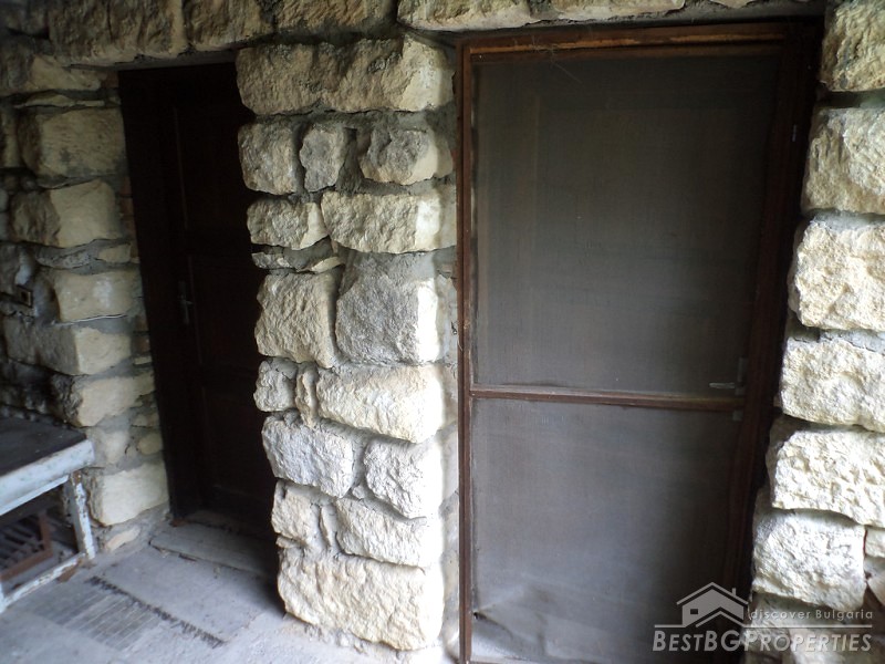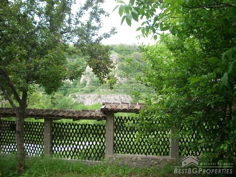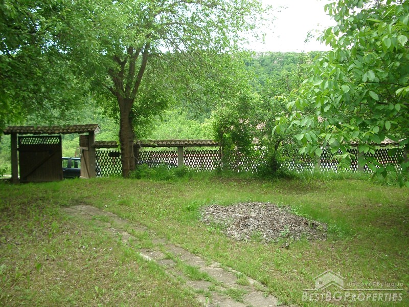 The house offers 140 sq m of living space consists of two bedrooms, living room, kitchen, bathroom and a storage room. Currently the house is furnished with old furniture, as shown on the pictures. The garden is 1,200 m2 with fruit trees and outdoor fountain. The property is fenced on all sides and has wonderful view of the rocky shore of the river, which is only 50 meters away. In the yard there is an external toilet and outdoor shower equipped with a metal water tank, which is heated from the sun.