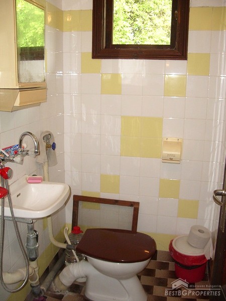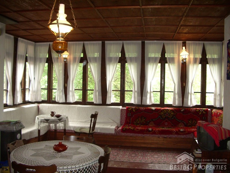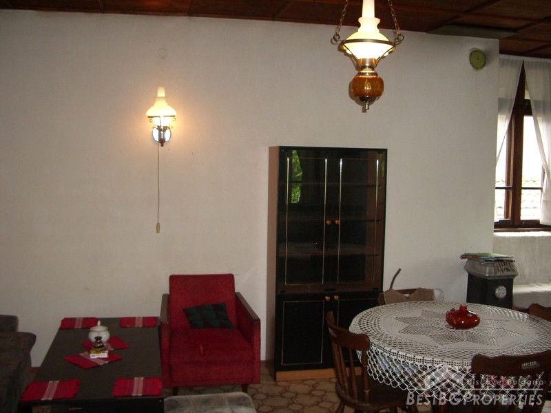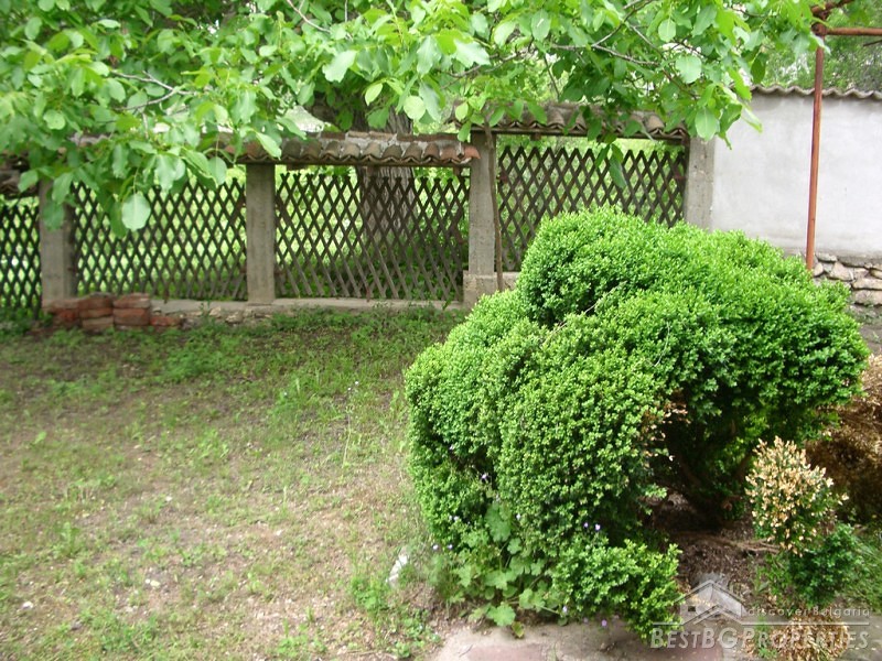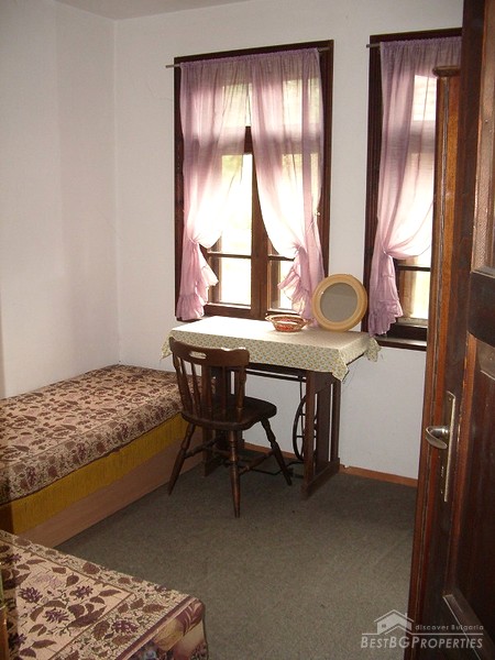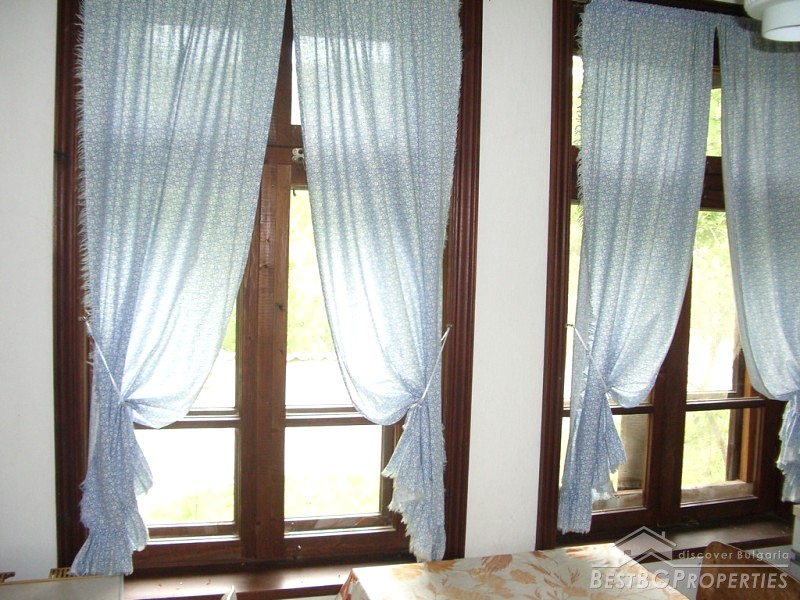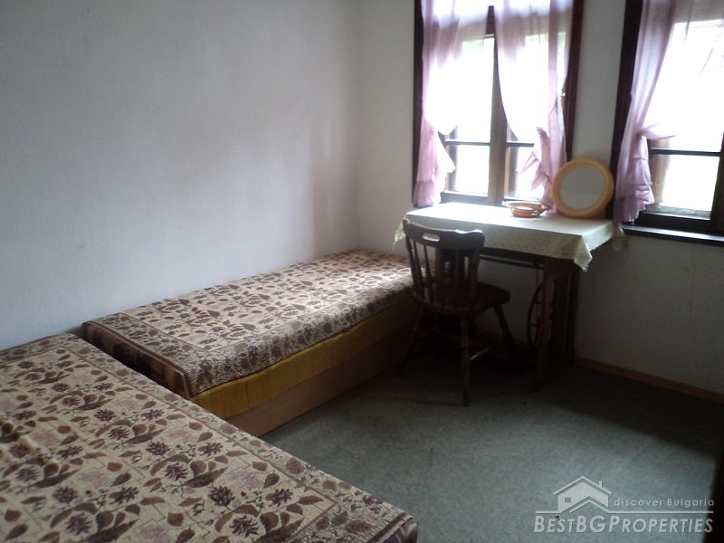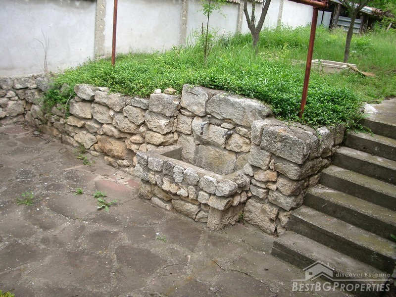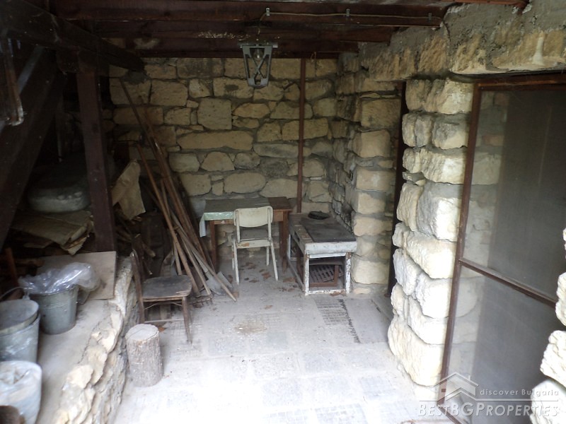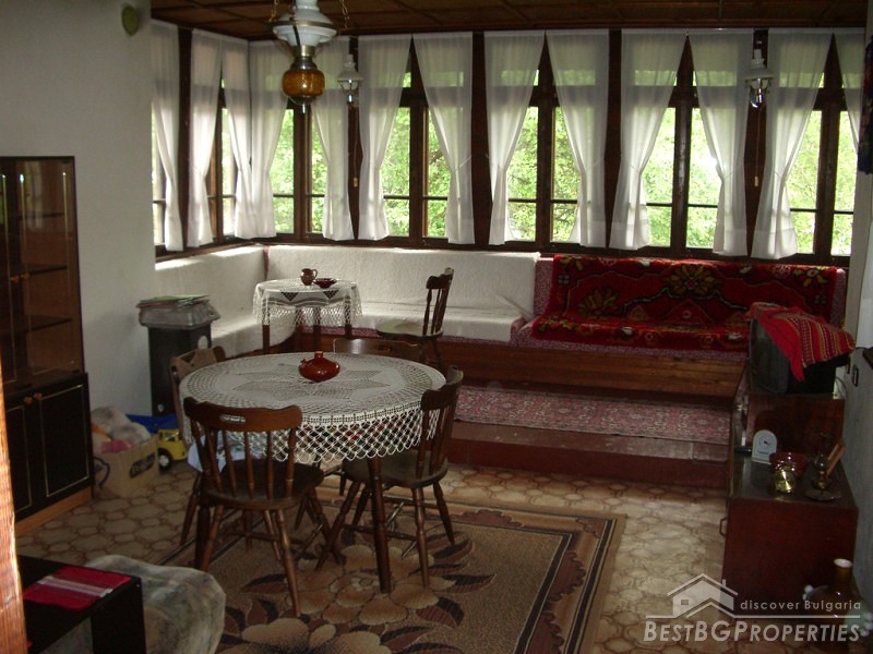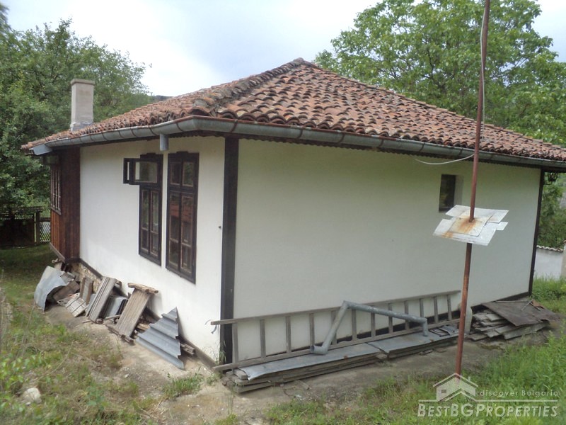 The house offers 140 sq m of living space consists of two bedrooms, living room, kitchen, bathroom and a storage room. Currently the house is furnished with old furniture, as shown on the pictures. The garden is 1,200 m2 with fruit trees and outdoor fountain. The property is fenced on all sides and has wonderful view of the rocky shore of the river, which is only 50 meters away. In the yard there is an external toilet and outdoor shower equipped with a metal water tank, which is heated from the sun.