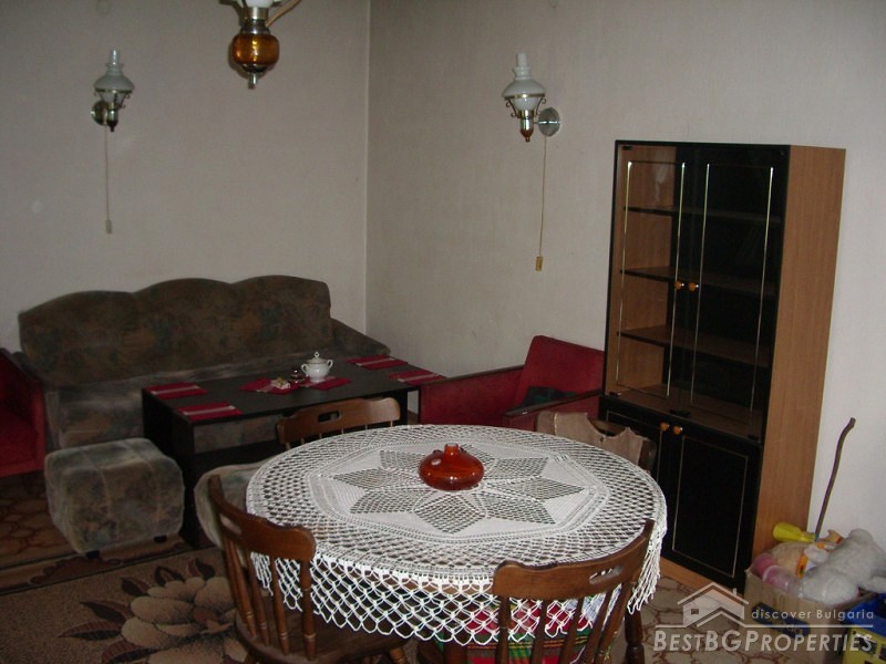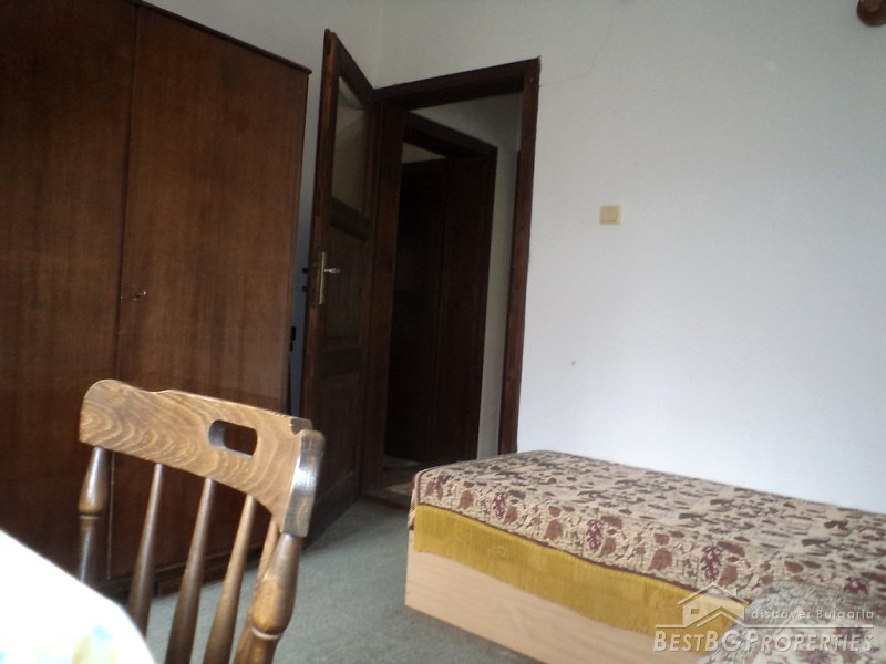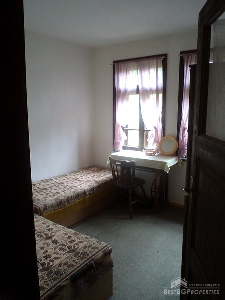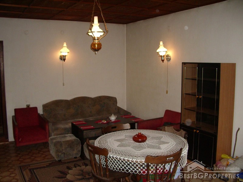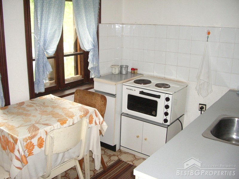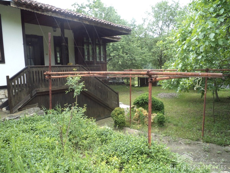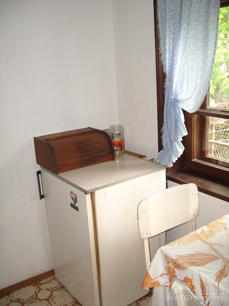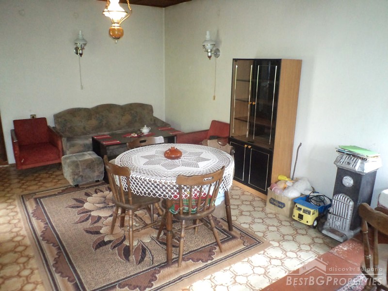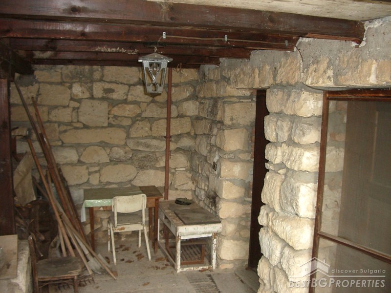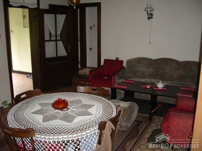The house offers 140 sq m of living space consists of two bedrooms, living room, kitchen, bathroom and a storage room. Currently the house is furnished with old furniture, as shown on the pictures. The garden is 1,200 m2 with fruit trees and outdoor fountain. The property is fenced on all sides and has wonderful view of the rocky shore of the river, which is only 50 meters away. In the yard there is an external toilet and outdoor shower equipped with a metal water tank, which is heated from the sun.