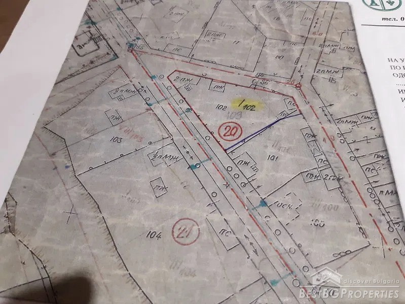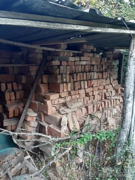 The yard is 1090 m2, bordered by 3 streets and another property in which no one has lived for a long time. There is a greenhouse in the yard, a dozen fruit trees (cherry, 2 large pears, apricots, plums, 3 walnuts). There are also vines in the garden.
