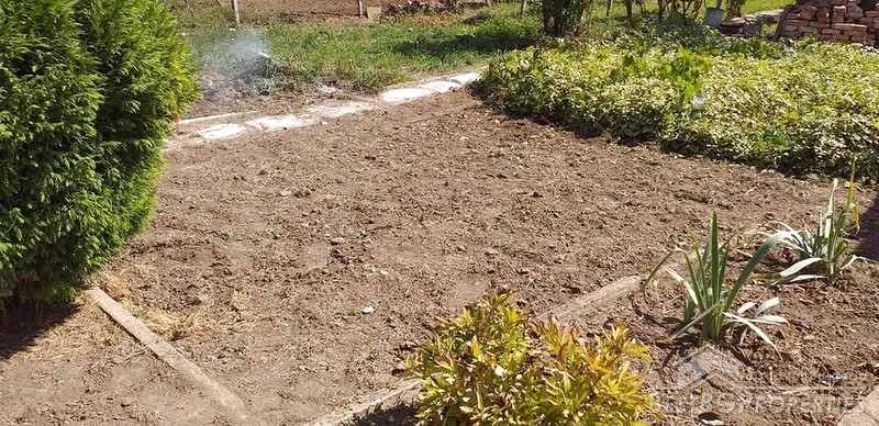 The property is built on a spacious plot of land with total size of 1000 sq m. The yard is large, flat, with a rectangular shape. The garden is perfectly maintained and includes various fruit trees.