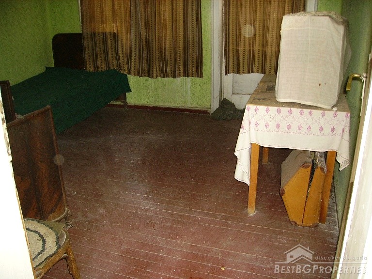 The house which is for sale is old and is in need of renovation in order to become livable again. It consists of two residential floors with a basement and separate outside bathroom. The total living area of the house is around 170 sq m and it is built on a large plot of land with area of 600 sq m. There are all communications - water and electricity.