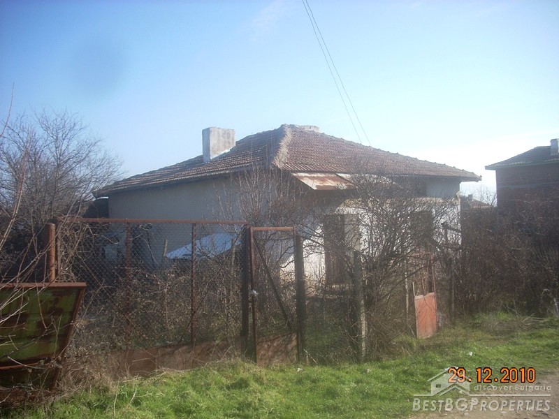 The property which is for sale consists of an old rural house and a very spacious yard. The building is one story, comprising three rooms. The parcel has total area of 1600 sq m. It is totally flat and is overgrown with wines and some fruit trees although in need of landscaping and maintenance. The house is old and is in need of renovation in order to become livable again. It has solid foundations and roof, wooden window joineries. The whole property is surrounded by a wire fence. There are few additional agricultural outbuildings.