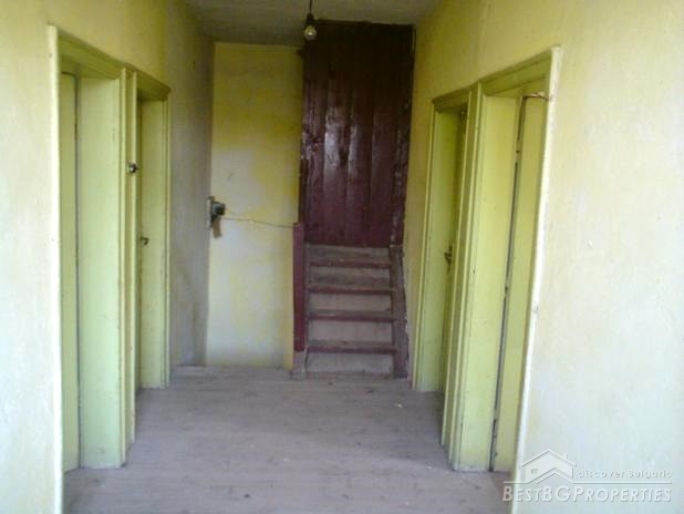 The house is on two floors with built area of 80 sq m. It comes with a spacious plot of land with size 780 sq m. The house is old and in need of major renovation before you could move in. Or it can be demolished and then build a new one. On the first floor there is a basement and one more room. On the second floor there are three rooms and a storage premise.