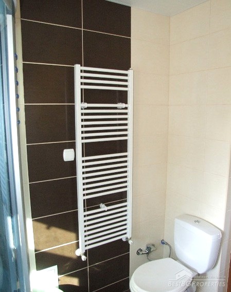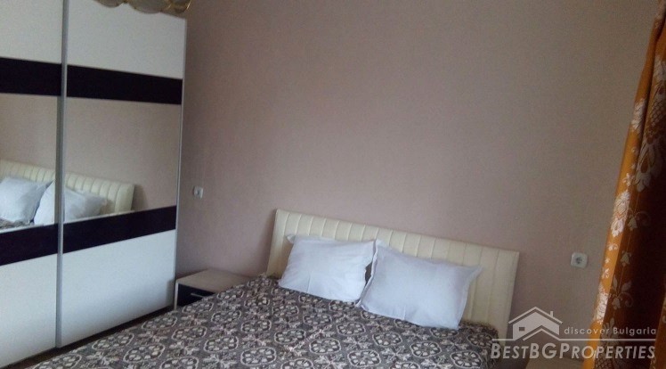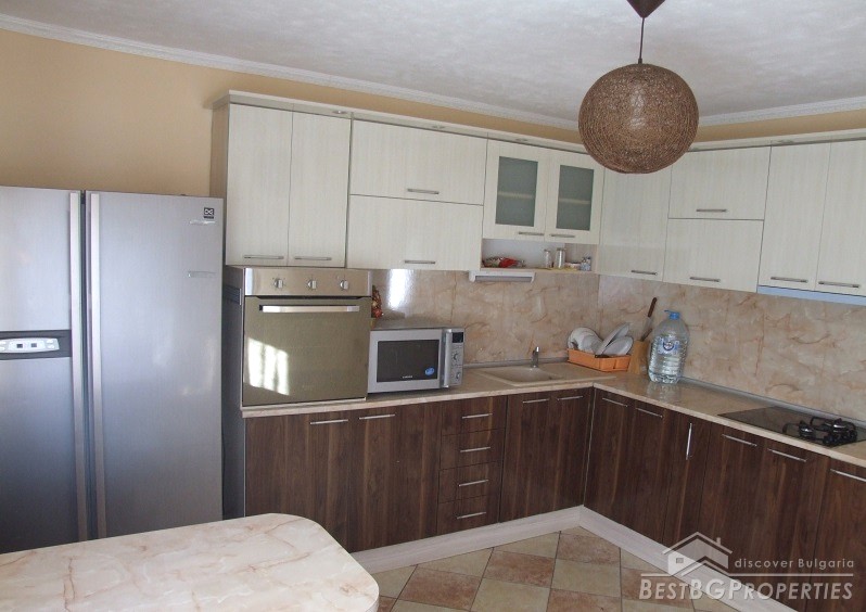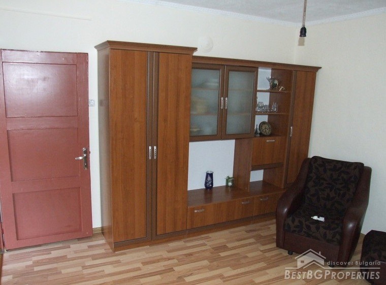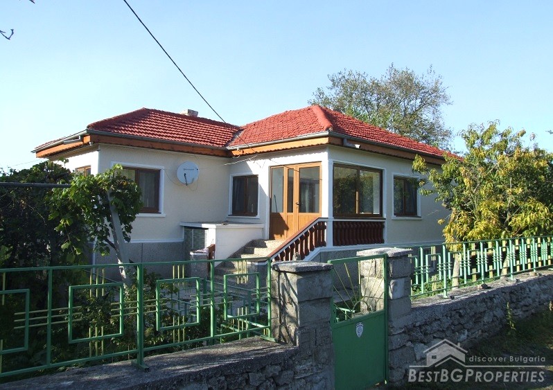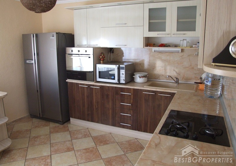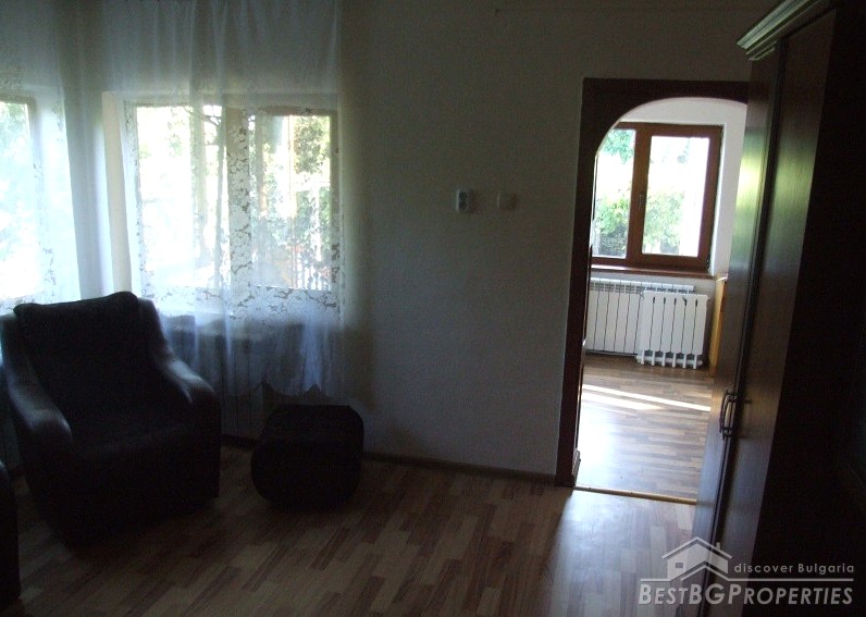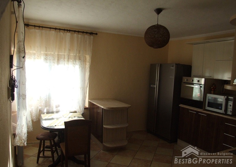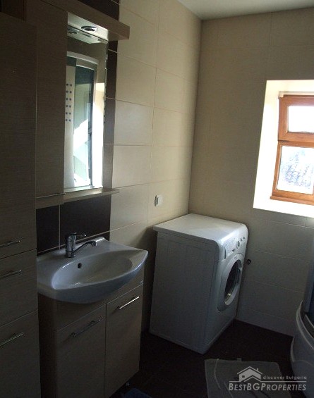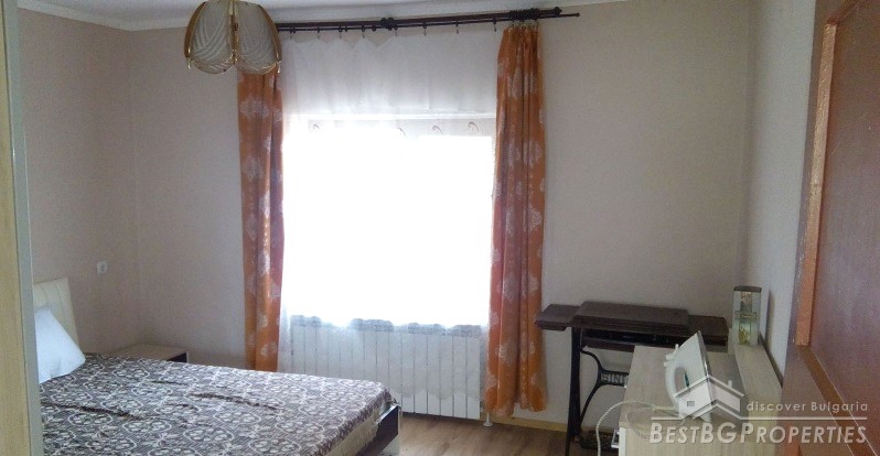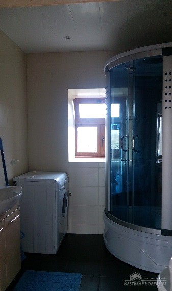 The house has an area of 90 sq m and consists of glazed entrance, hallway, two bedrooms, kitchen, bathroom and toilet. The kitchen has all electrical appliances (including ceramic hob on gas and electricity), furnished and equipped bathroom, bedroom furniture. There is also a basement where the water heater and boiler are. There is central heating with radiators in all rooms and the bathroom. There is electricity, security system, Internet and Bulsatkom.