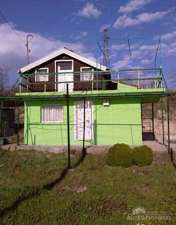 The house is newly built. The living area is distributed between two residential floors. The access to the second floor is by an outer stair case. The second floor includes a very large balcony with outstanding view. The house has inner bathroom with WC. From the inside it is finished with terracotta floorings, latex painted walls and ceilings. There is a large fireplace in the living room. The window joineries are wooden. There iswater and electricity provided in the property. The house is built on a spacious plot of land - 1000 sq m. The plot is nicely arranged with over 80 fruit trees - peaches, cherries, plums and other. The property is accessible by a dirt road.