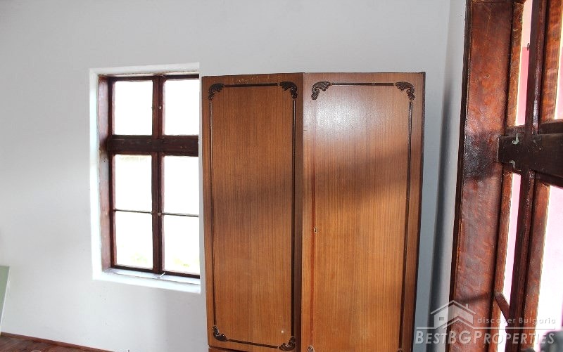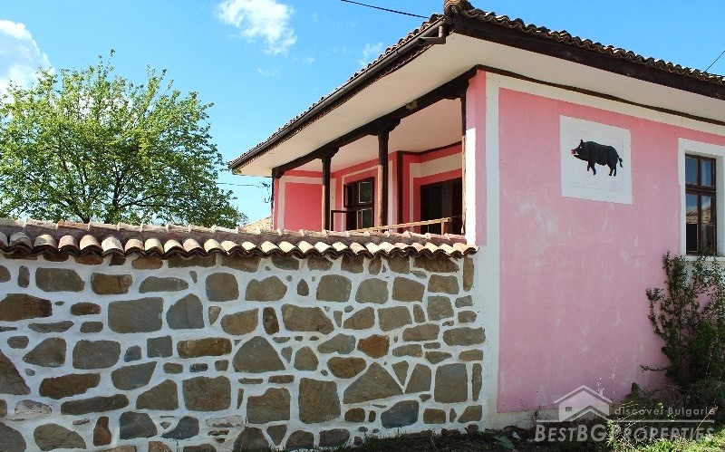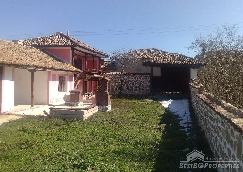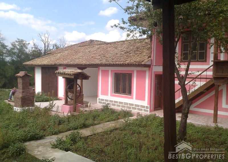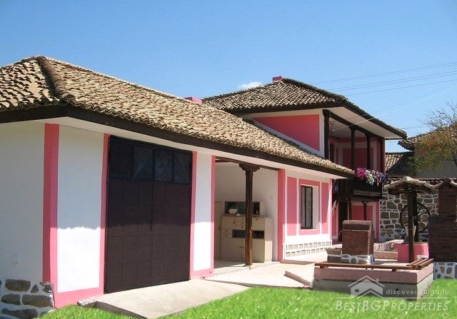 The house was renovated to look as the Old Bulgarian style. It has an area of 100 sq m and a yard of 1700 sq m. The house is on two floors. The first floor consists of a large living room, 2 bathrooms, winter and summer kitchen. On the second floor there are two bedrooms with balcony. External staircase connects both floors. There is a large indoor and outdoor garage and a well. The property has new sewer, plumbing, electrical installation. It is offered fully finished on key.