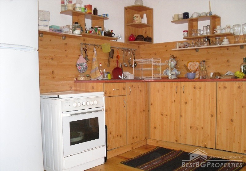 The house benefits with a large cozy living room with fireplace that fits up to 20-30 people. There are three bathrooms with two boilers. During the construction have been used only natural materials - stone and wood.