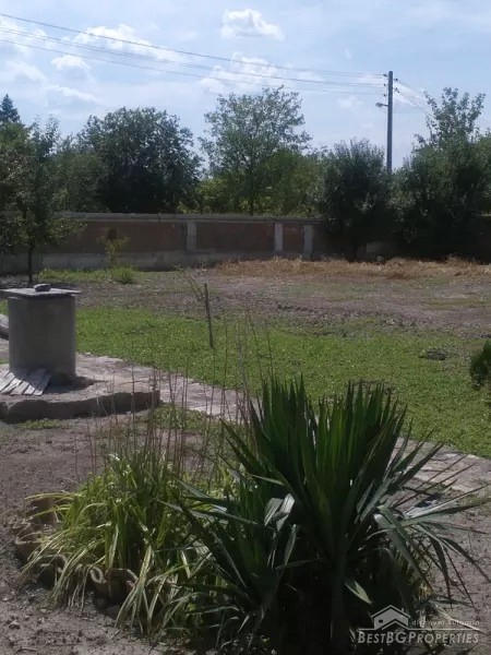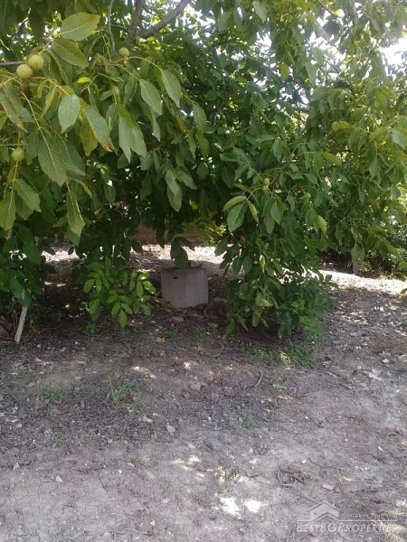 The whole yard is 1415 square meters. A solid fence surrounds it from all sides. The access to the property is via large wooden gate of old style. The parcel is flat. Black soil, with the possibility of growing vegetables. There are two wells for the irrigation.