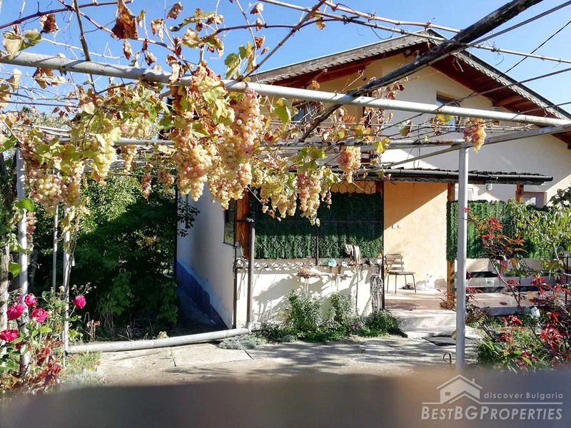 The house was built in 2007. It is solid built - reinforced concrete slab with columns, brick walls, plastered outside and inside, PVC windows (golden oak). The property is supplied with electricity and water. There is a security system.