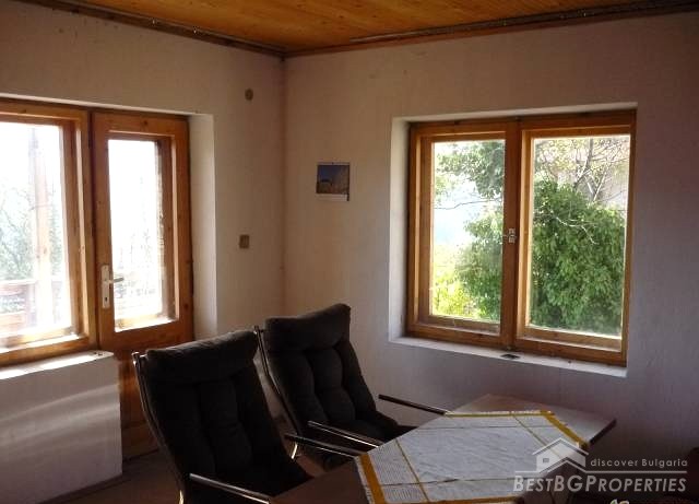 The house which is for sale is two stories, comprising living area of 80 sq m for each floor. The house has been fully renovated just recently. It is for sale "on key" stage. The house is built out of brick and concrete. The finishing is made with special care for the details. The floorings are wooden, the window joineries are also wooden. The walls and ceilings are painted with high quality latex. The house is for sale party furnished. It is suitable for whole year around living and you can move in right away. The house is built on a nice plot of land - 300 sq m large. It is located on a hill, thus the property benefits from amazing view. There is water and electricity provided. A basement - 50 sq m is also included in the price.