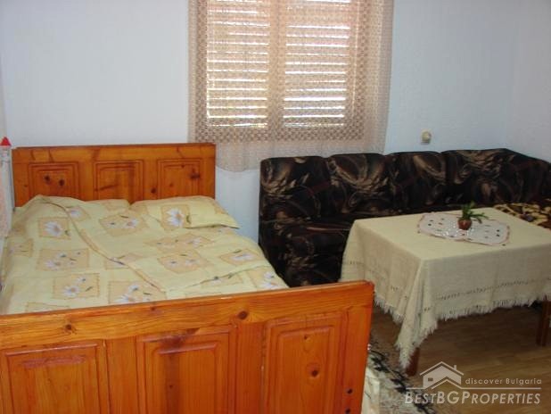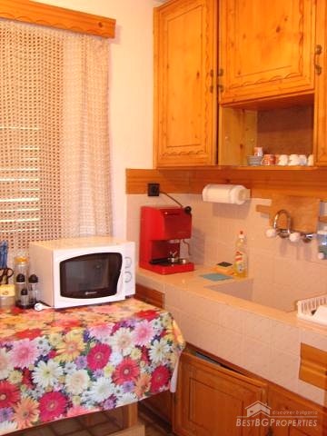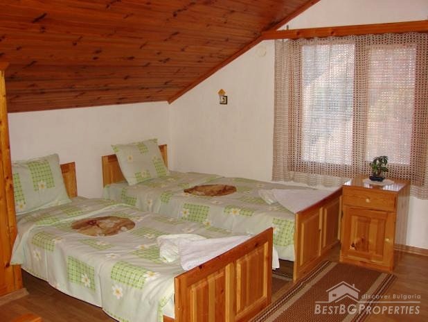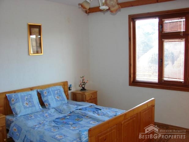 The house comprises with total living area of 213 sq m distributed between three residential floors. It is built on a large plot of land with size 1530 sq m. The property is for sale completely furnished and ready to move in. There are all communications - water, electricity local heating. There are three bathrooms, a garage, balconies with outstanding views towards the mountains. The house was finished in 1990 year and has been renovated. It is made out of concrete and brick. The property is perfect for a guest house in the mountains.