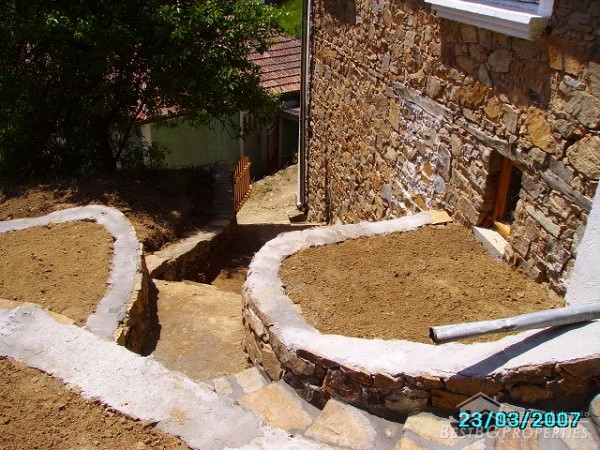 The yard is 700 sq m in size, with garage on two floors. There is water, electricity and asphalted road. In the yard there is a fountain with clean water from the mountain.
