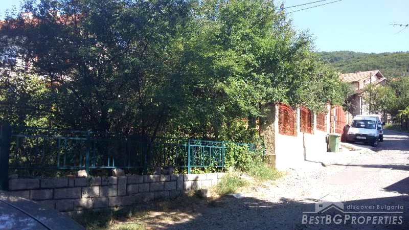 The property is surrounded with a solid fence with granite blocks and metal panels. The size of the parcel is 800 sq m. The yard is flat, planted with fruit trees and very sunny.